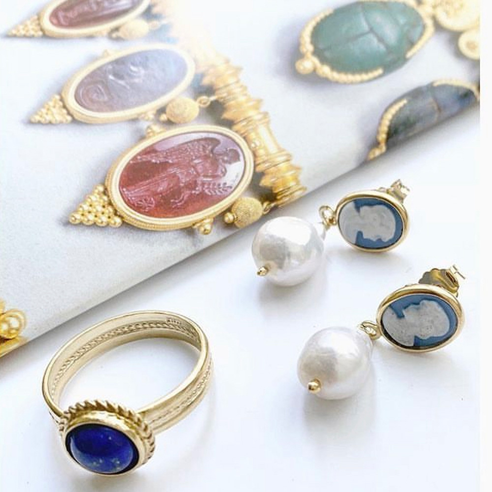 | Libellé | Boucles d'Oreilles Camée Bleu Avec Perles |