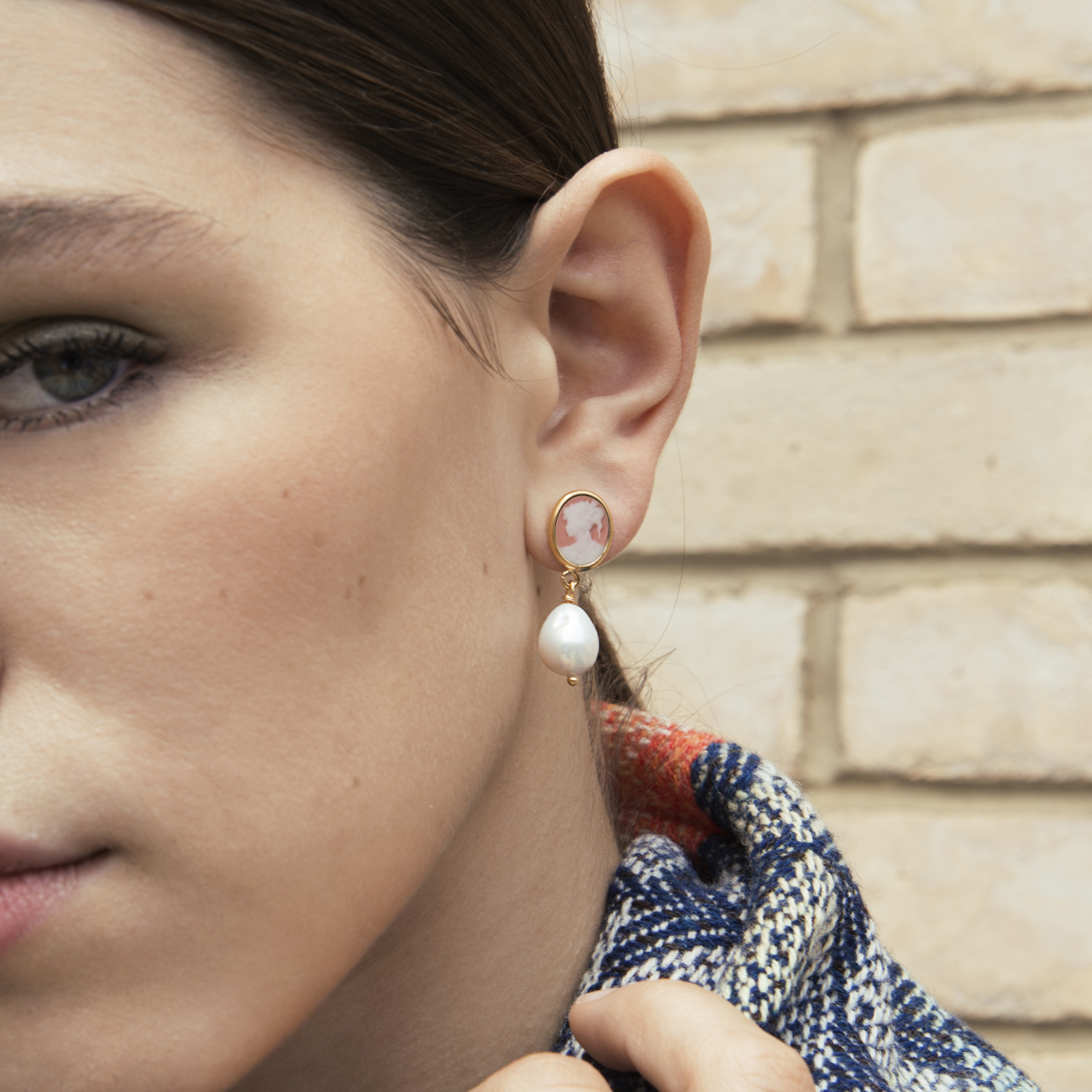 | Libellé | Boucles d'Oreilles Camée Rose Avec Perles |
