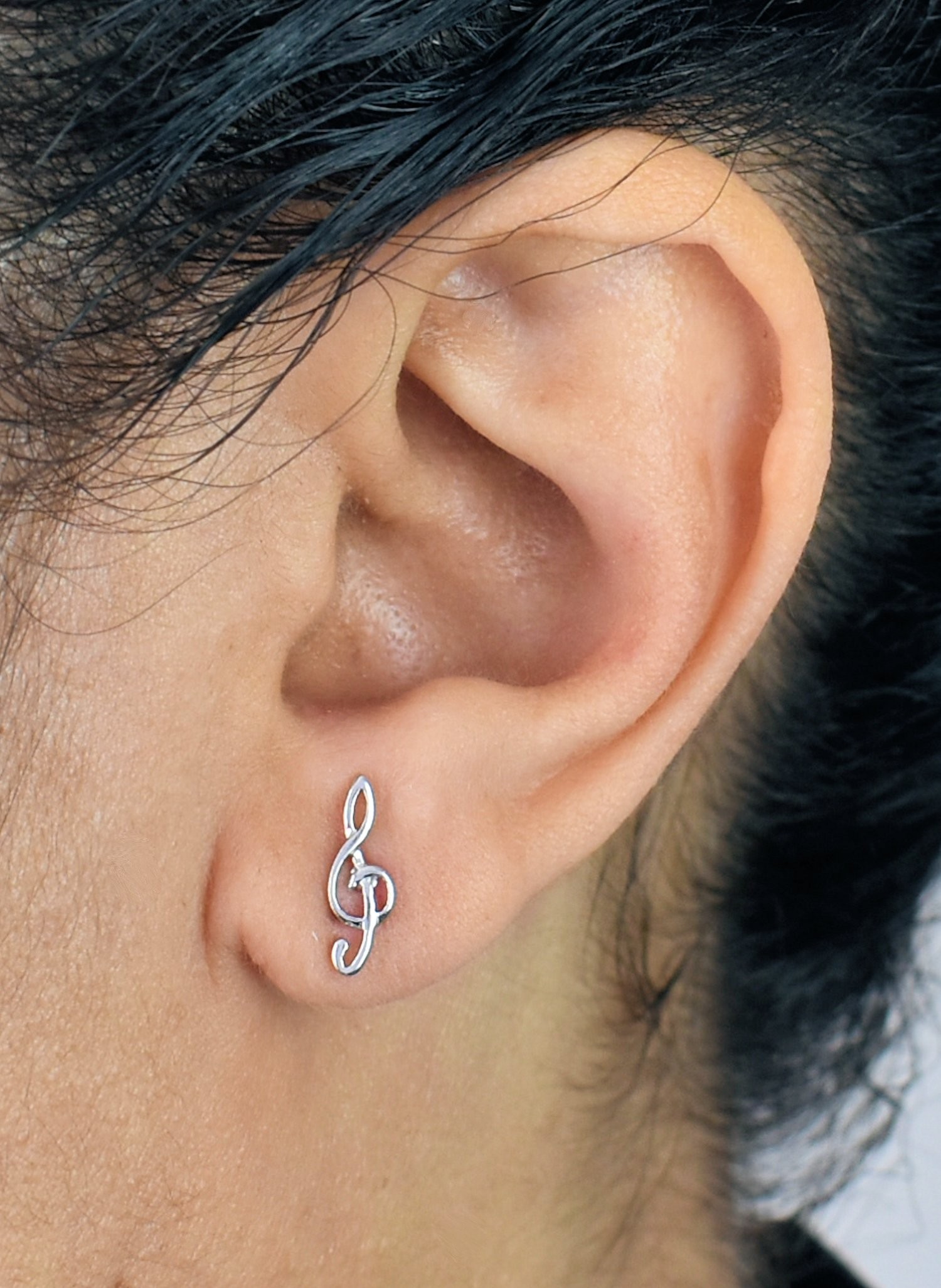 Boucles d'oreilles clé de sol note de musique Argent 925 Rhodié