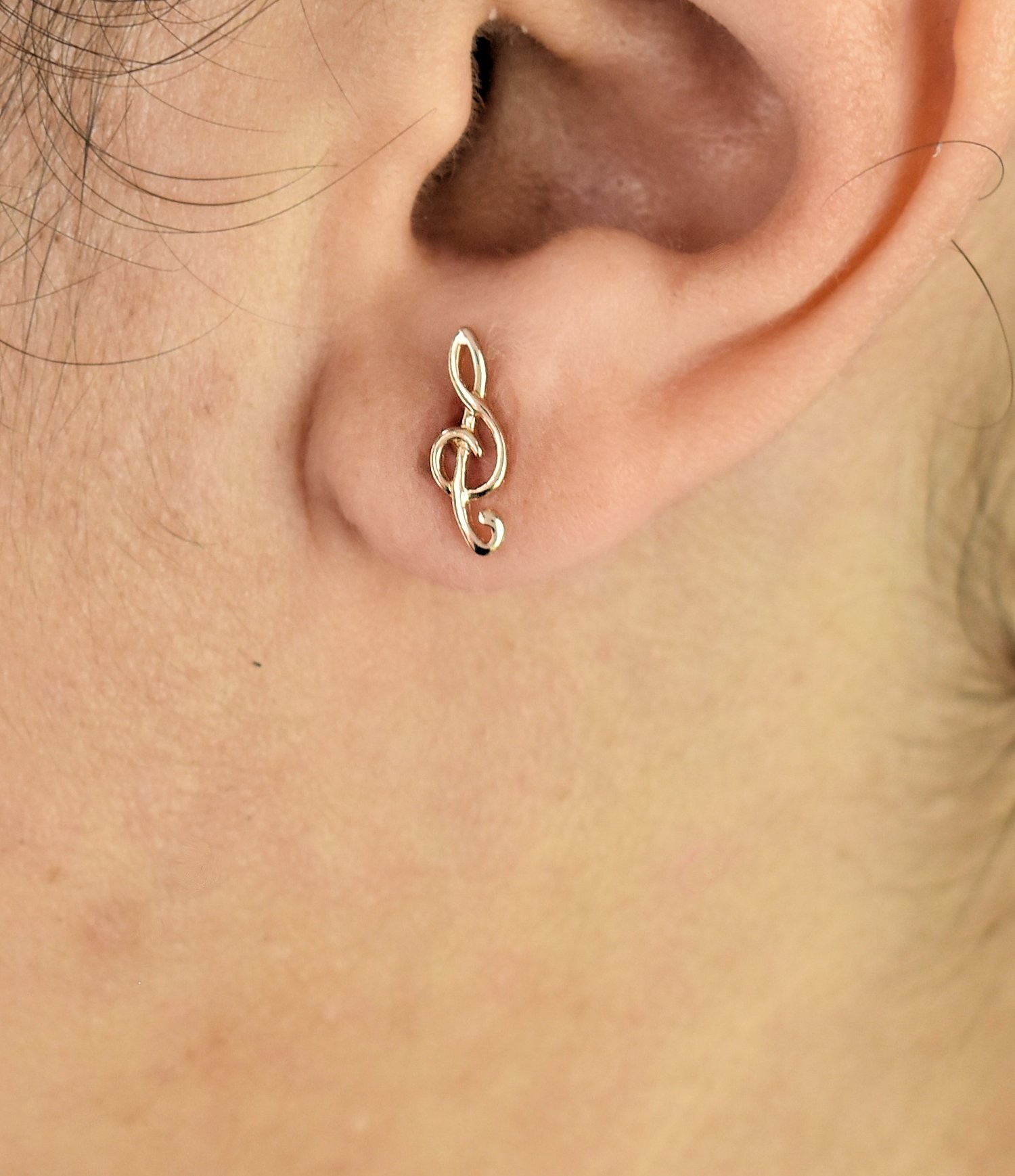 Libellé Boucles d'oreilles clé de sol note de musique Plaqué OR 750 3 microns