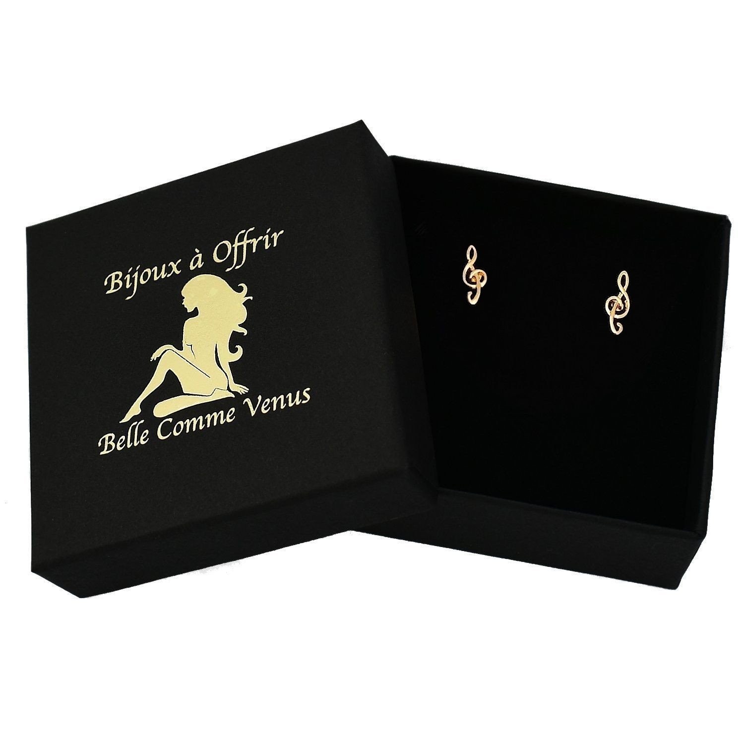 Boucles d'oreilles clé de sol note de musique Plaqué OR 750 3 microns