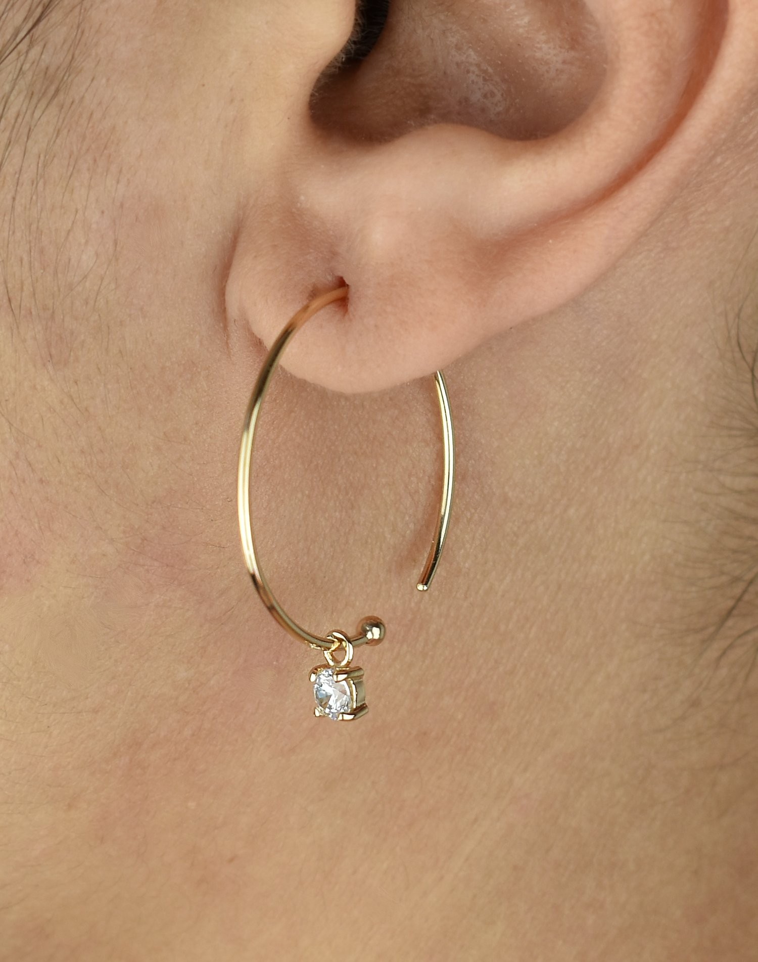 Boucles d'oreilles créole oxyde de zirconium pendant Plaqué or 750 3 microns