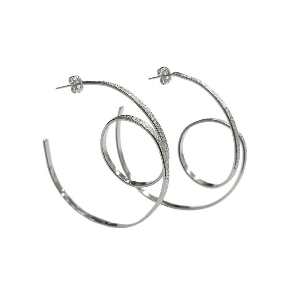 Boucles d'oreilles demi créole en plaqué argent faites à la main - Bijou de créateur. Dimension : 5 cm. Livré dans un écrin. Tous les produits sont faits à la main, conçus et fabriqués en Grèce. La haute qualité des bijoux est le résultat d'une conception détaillée, d'une excellente sélection de matériaux antiallergiques.