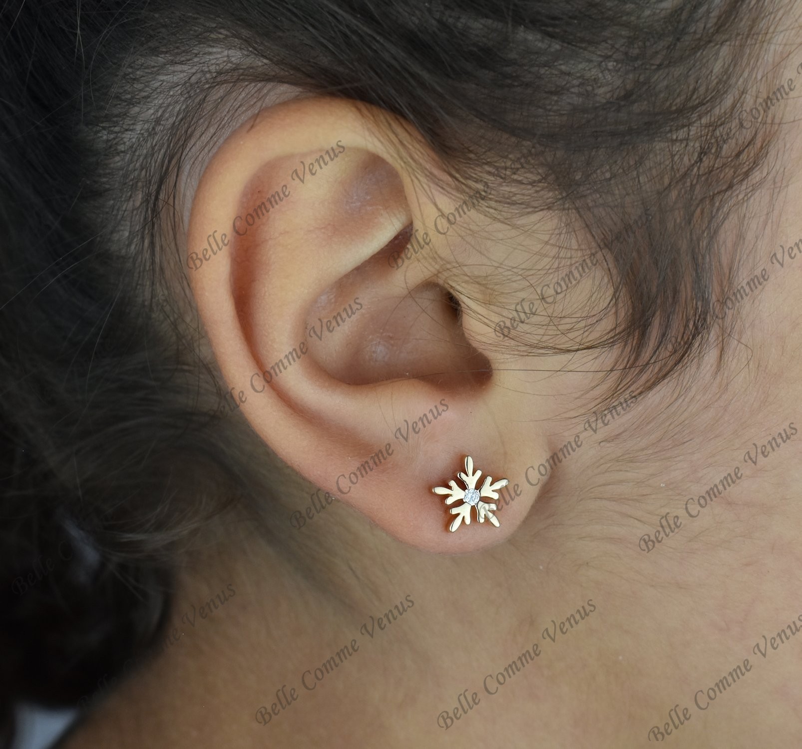 Un bijou est un cadeau très spécial, c'est pour cela que ces boucles d'oreilles flocon de neige oxyde de zirconium Plaqué OR 750 3 microns sont livrées dans un écrin à l'effigie de la marque Belle Comme Venus accompagné de son certificat d'authenticité et de sa pochette cadeau.