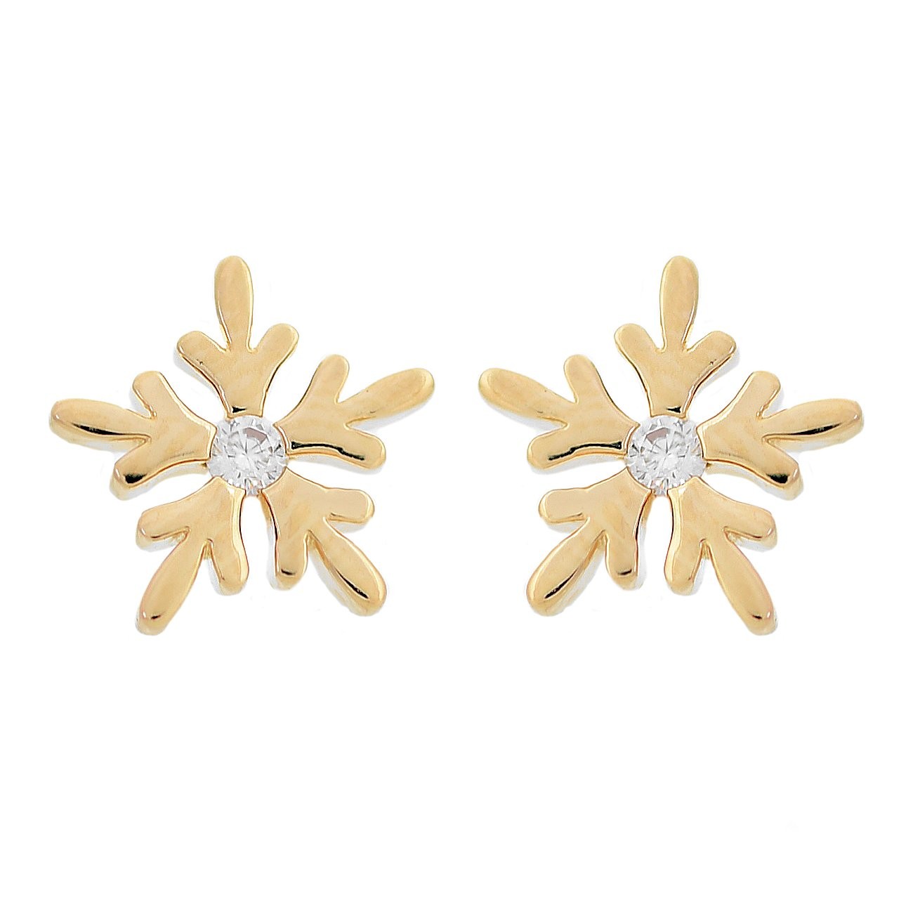 Boucles d'oreilles flocon de neige oxyde de zirconium Plaqué OR 750 3 microns