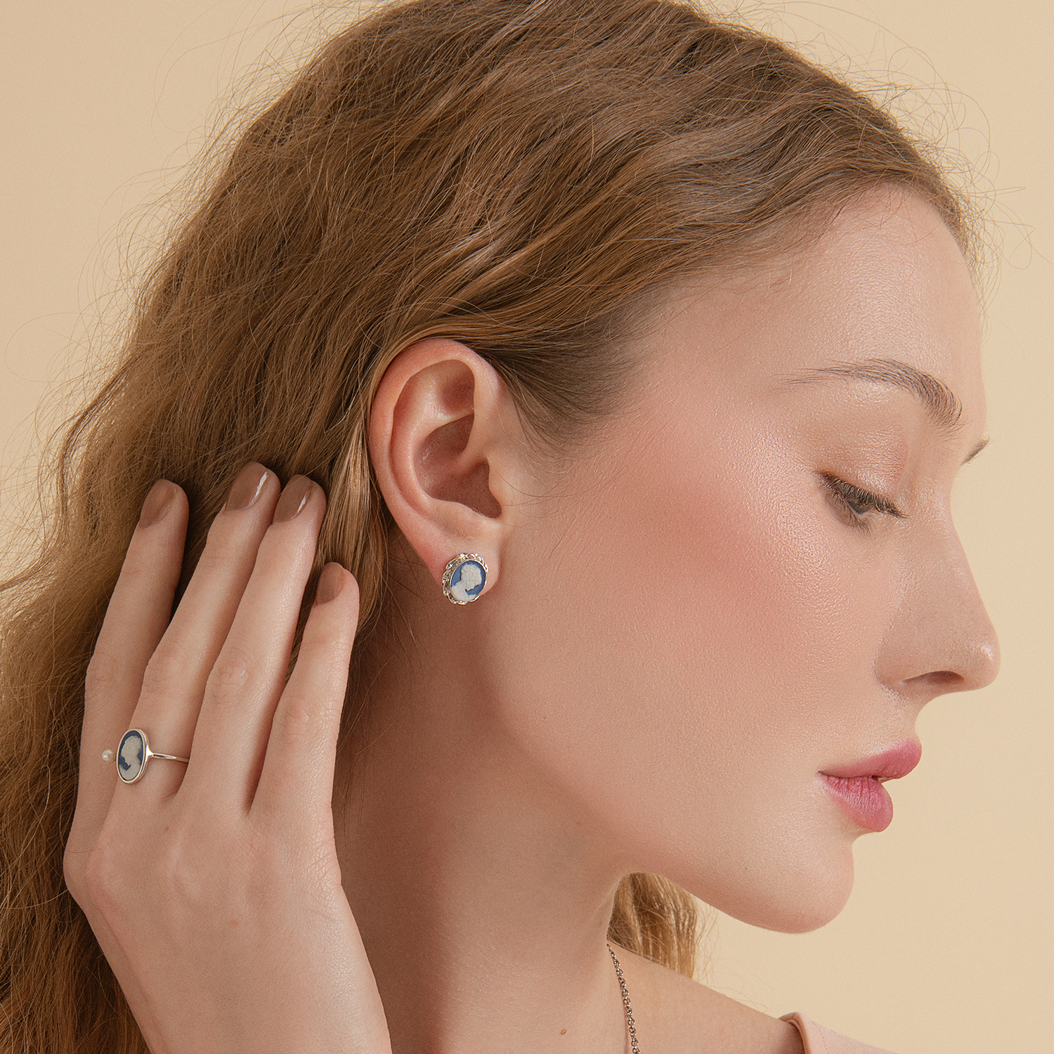 | Libellé | Boucles d'oreilles Mini Camée Bleues |