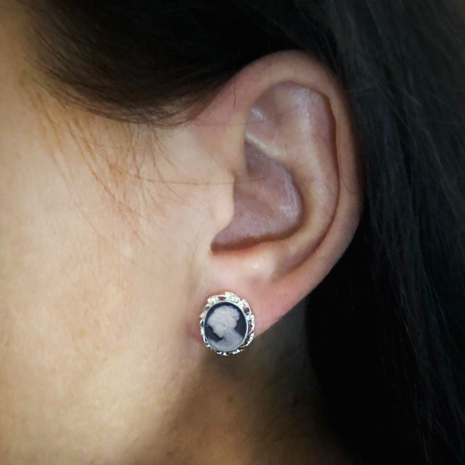 | Libellé | Boucles d'oreilles Mini Camée Noires |