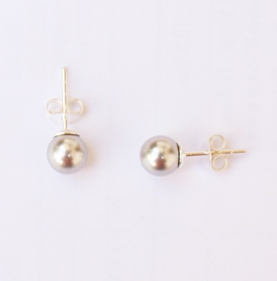 Boucle d'oreille style clou d'oreilles en argent et boule en perle grise. clou d'oreille argent 925 - Diamètre : 1cm - Poids : 1gr.