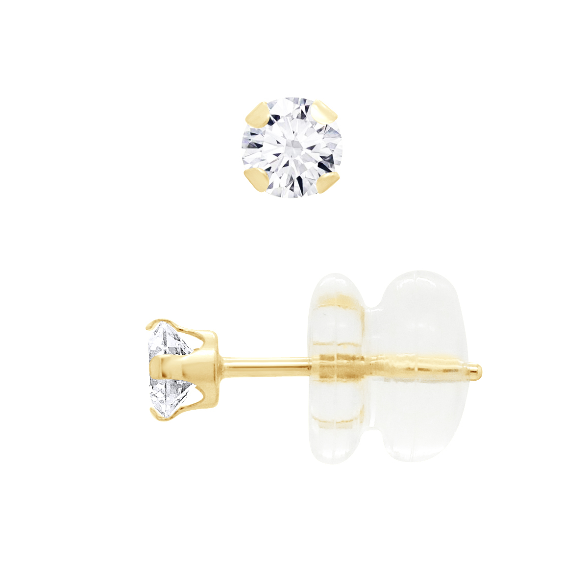Boucles D'Oreilles Puces - Ornées d'Oxydes de Zirconium serti Griffe - Diamètre 3 mm - Système Poussette Silicone et Or - Livré avec son Certificat d'Authenticité et de Garantie Internationale
