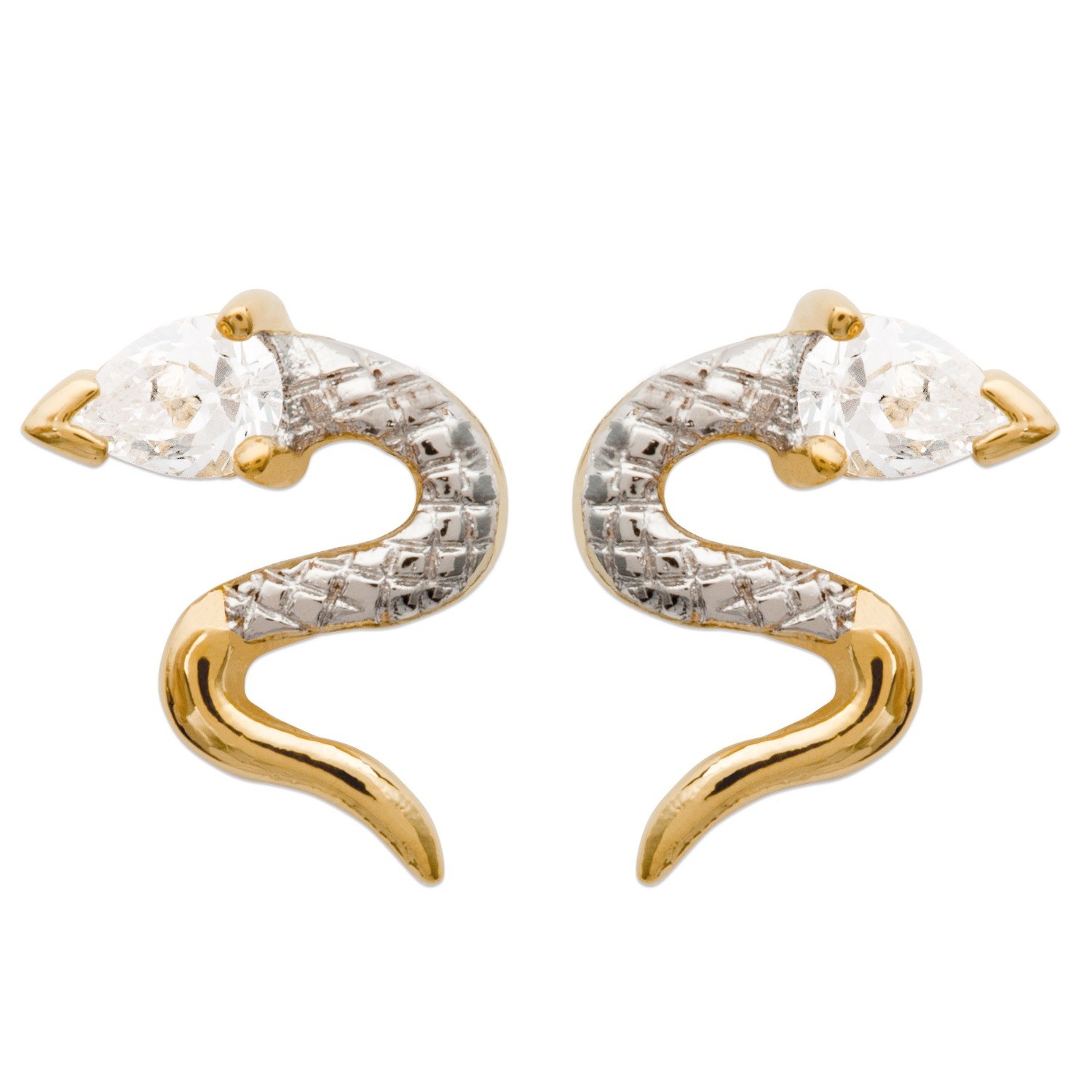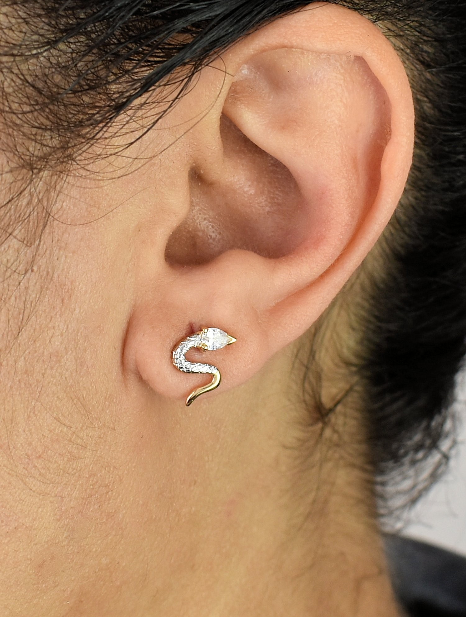 Boucles d'oreilles Serpent Oxyde de Zirconium Plaqué OR 750 3 microns 2 tons