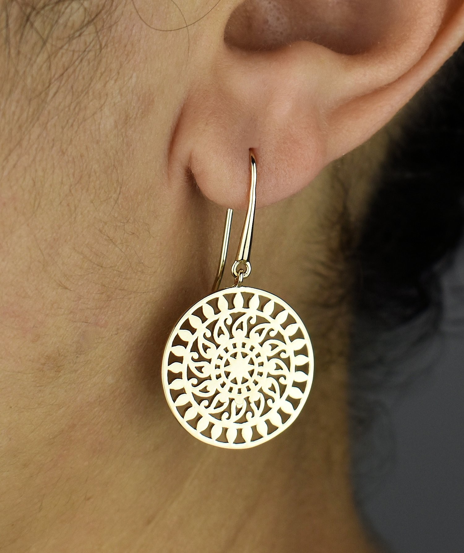 Ces boucles d'oreilles uniques présentent un magnifique motif soleil arabesque ajouré qui rayonne avec élégance. Elles ajoutent une touche d'élégance à n'importe quelle tenue.