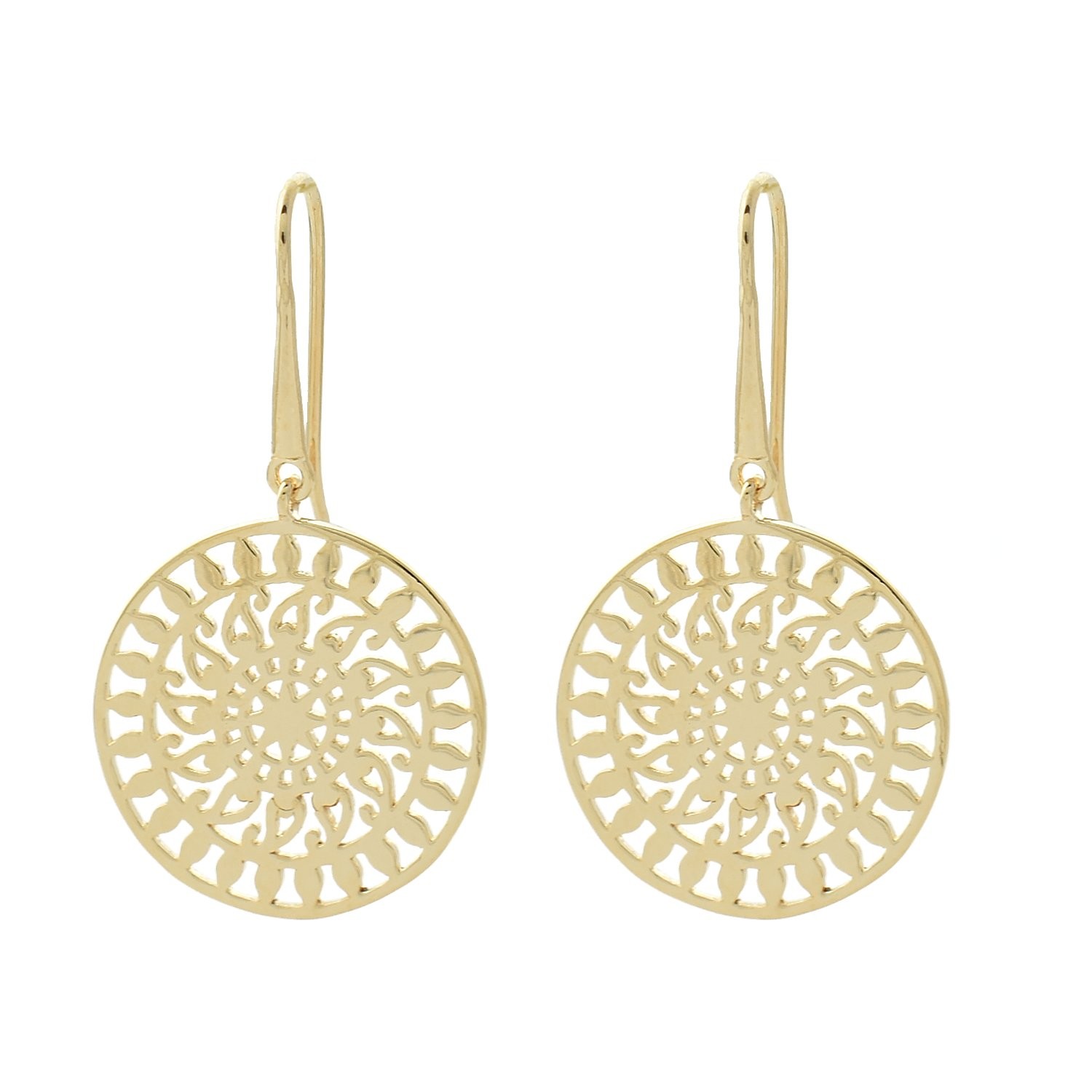 Boucles d'oreilles soleil arabesque ajouré Plaqué OR 750 3 microns