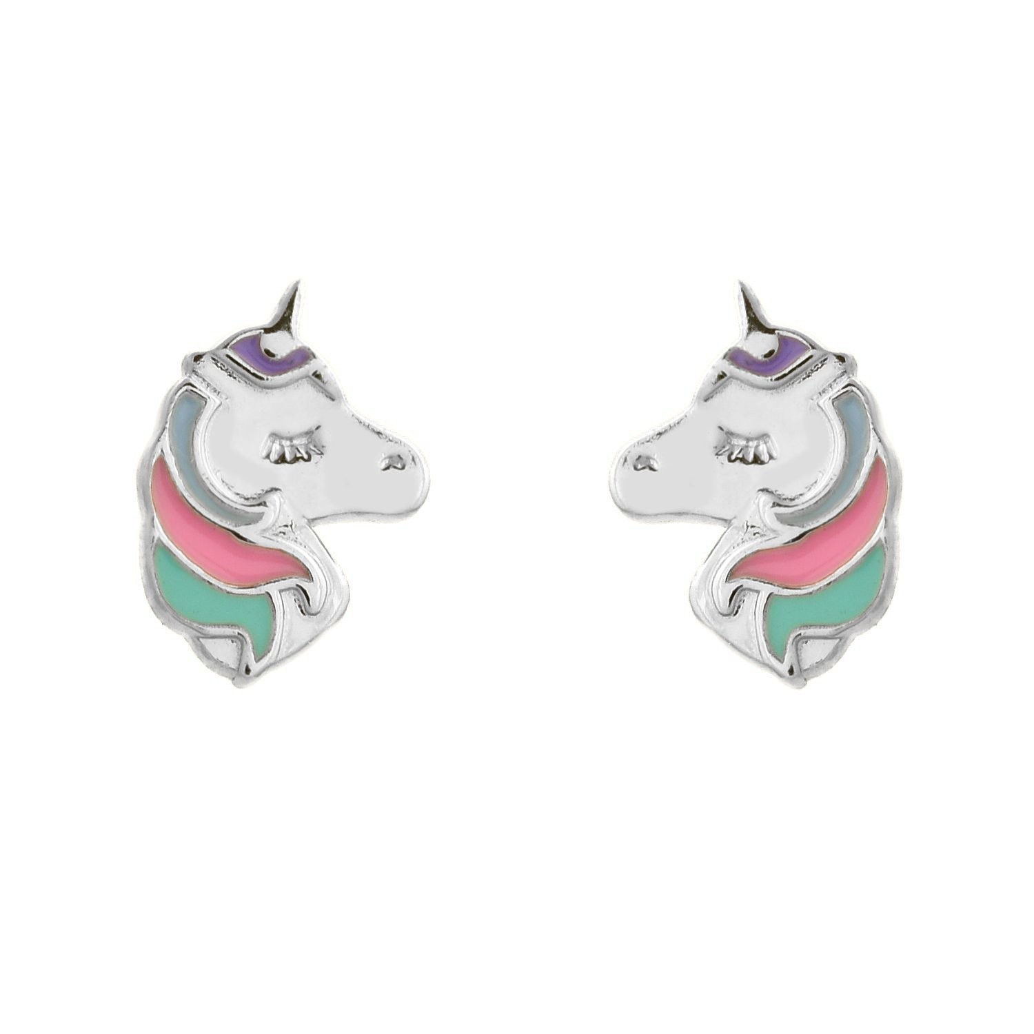 Boucles d'oreilles tête de licorne émail coloré Argent 925 Rhodié