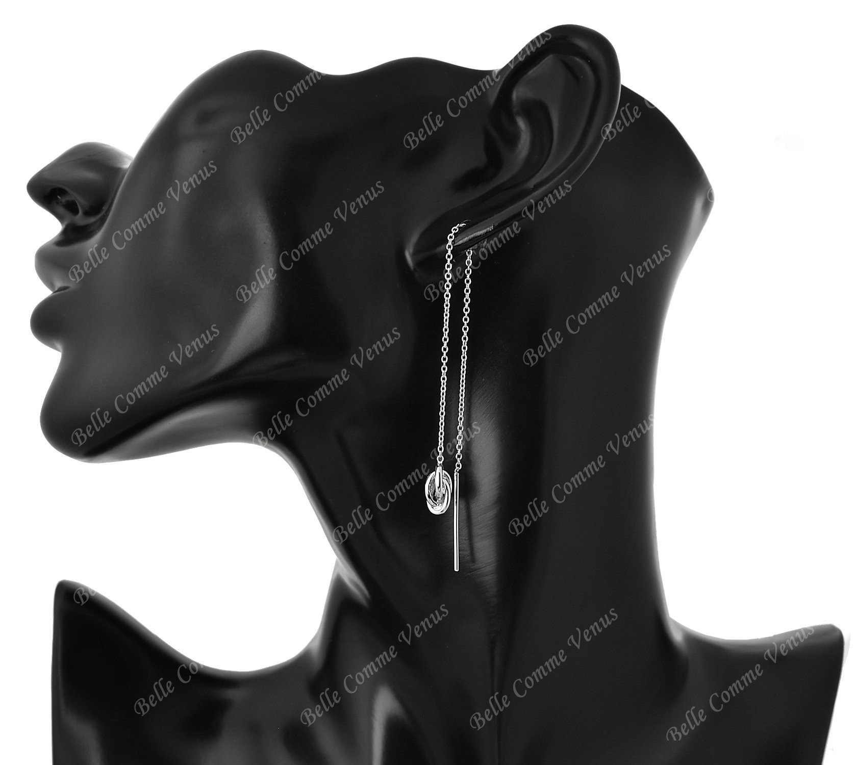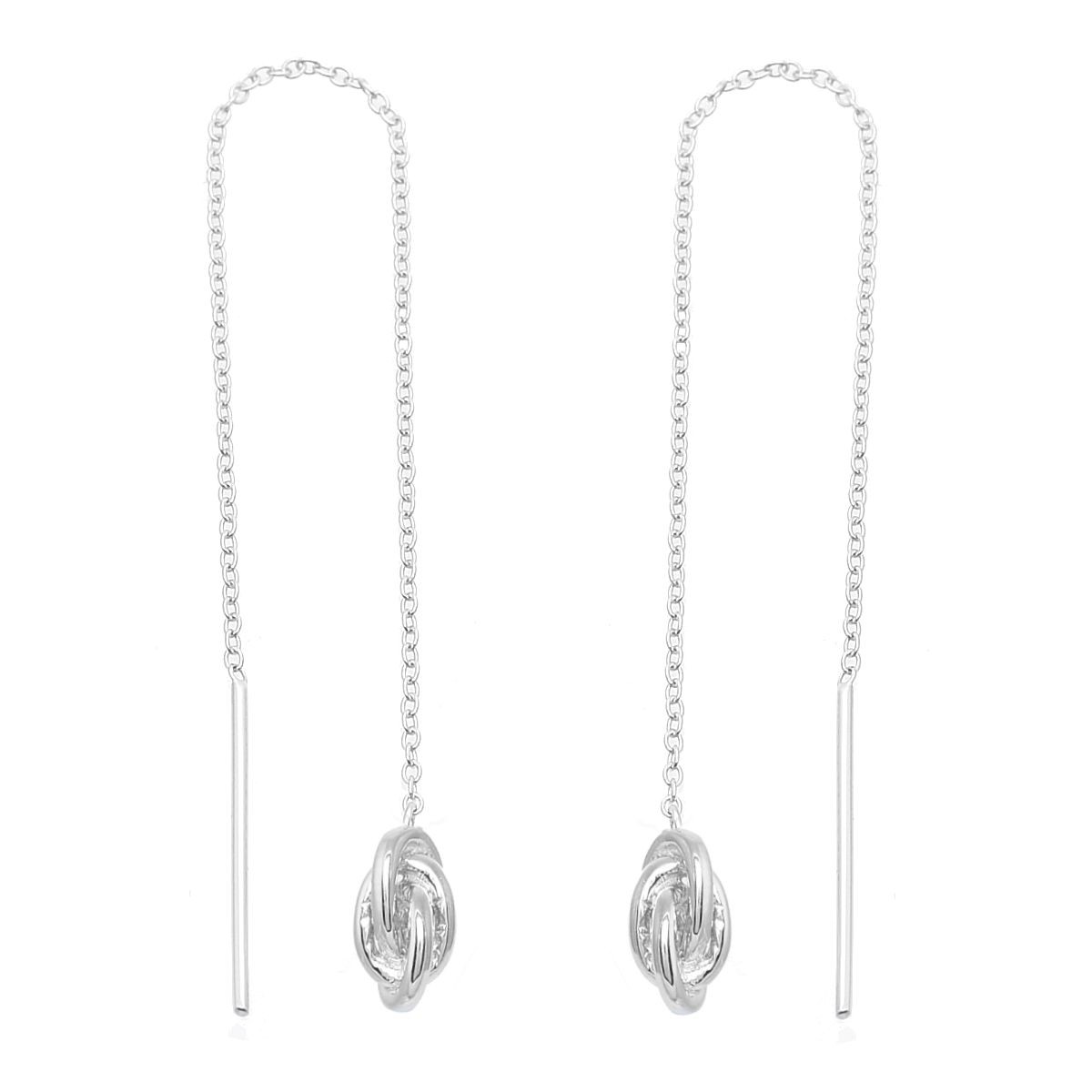 Boucles d'oreilles traversantes noeud tombant avec chaînette Argent 925 Rhodié