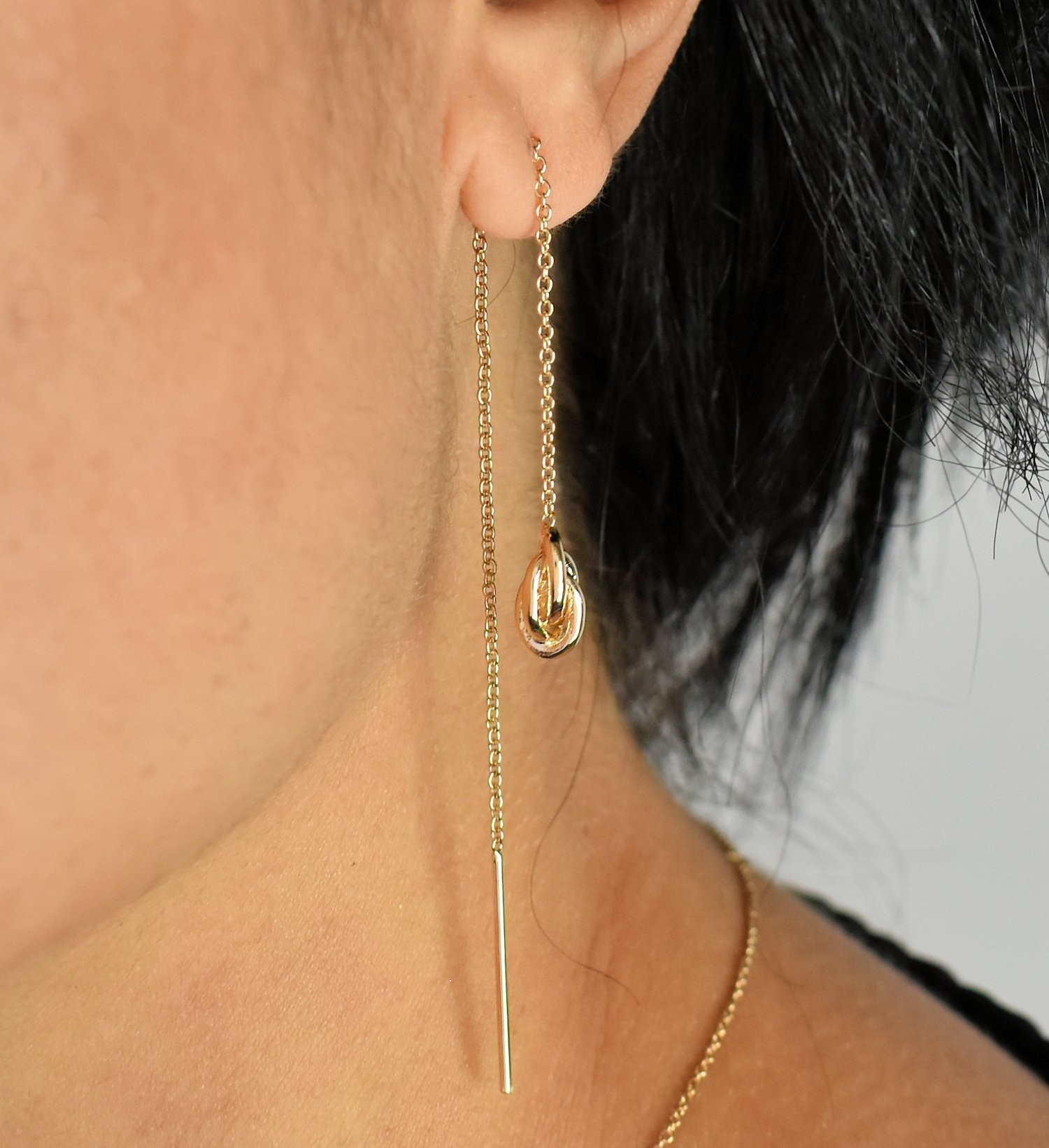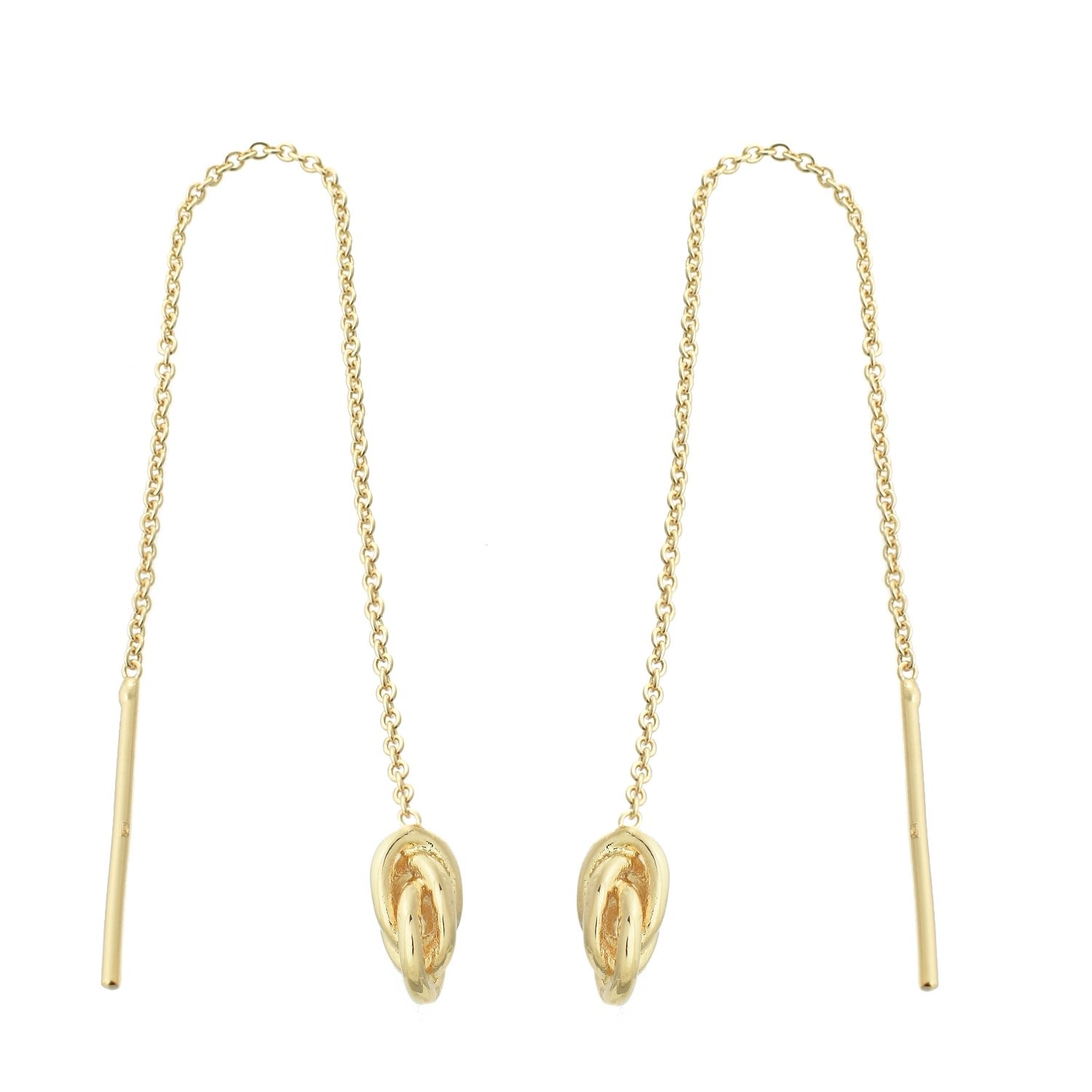 Boucles d'oreilles traversantes noeud tombant avec chaînette Plaqué OR 750 3 microns