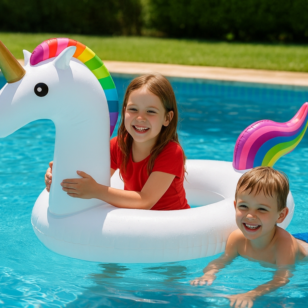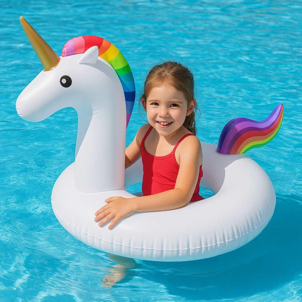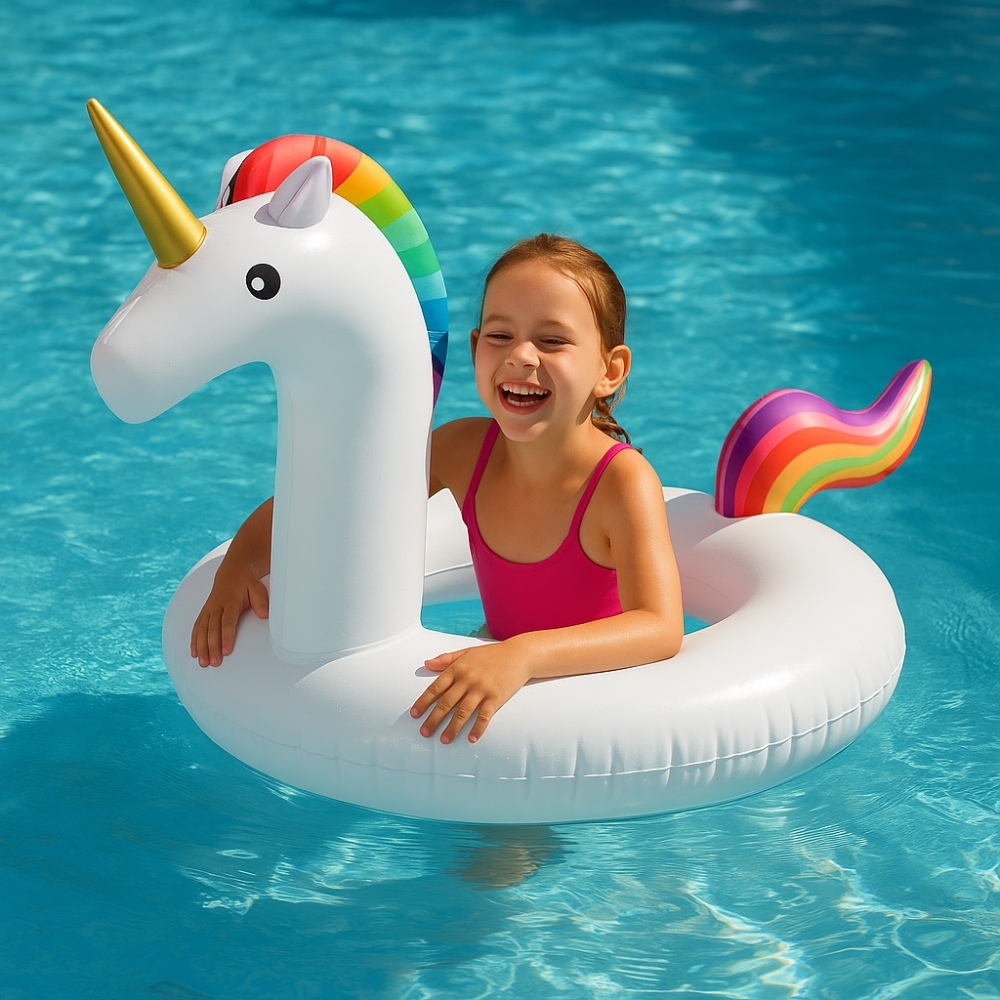 Un monde féerique à portée de main pour vos enfants ! Faites pétiller les yeux de vos enfants avec cette somptueuse bouée gonflable géante en forme de licorne arc-en-ciel, imaginée spécialement pour les petits rêveurs. Avec son diamètre généreux de 120 cm, elle offre un espace de jeu spacieux et sécurisé, parfaitement adapté à la taille et aux besoins des enfants. Sa conception en PVC épais et ultra résistant assure une excellente flottabilité et une grande stabilité sur l’eau, pour des heures d’amusement en toute sérénité. Son design féerique, avec ses couleurs arc-en-ciel éclatantes, sa crinière flottante aux tons pastel et sa corne dorée scintillante, transforme chaque baignade en une véritable aventure magique. Bien plus qu’un simple accessoire, cette bouée invite vos enfants à plonger dans un univers imaginaire plein de fantaisie. Légère, facile à gonfler et à transporter, elle sera leur compagne idéale à la piscine, à la plage ou au bord du lac, pour des moments de joie inoubliables en famille. Un design magique pour émerveiller les enfants Cette bouée en forme de licorne aux couleurs arc-en-ciel éclatantes séduit par ses détails soignés : oreilles pointues, crinière volante, corne dorée… Un vrai compagnon de jeu qui transforme chaque moment de baignade en aventure féerique ! Adaptée aux enfants Avec un diamètre de 120 cm, elle offre un grand espace de flottaison, tout en étant parfaitement dimensionnée pour les enfants. Elle peut accueillir les plus jeunes en toute sécurité, pour flotter, jouer ou se détendre sous la surveillance d’un adulte. Résistance et sécurité au rendez-vous Conçue en PVC renforcé, cette bouée est robuste face aux éclaboussures, aux rayures et à une utilisation régulière. Elle supporte jusqu’à 60 kg, assurant une flottabilité idéale pour les enfants tout en gardant une forme stable dans l’eau. Facile à utiliser et à transporter Dotée d’une valve anti-retour, elle se gonfle rapidement à la bouche ou avec une pompe. Une fois la baignade terminée, elle se dégonfle facilement et se range sans prendre de place – idéale pour les valises ou les sacs de plage. Un accessoire fun et photo-friendly Avec son look féerique, cette bouée est parfaite pour créer des souvenirs visuels inoubliables. Que ce soit en vacances, à la piscine ou lors d’une fête d’anniversaire, elle fait le bonheur des enfants et des parents fans de jolies photos ! CARACTÉRISTIQUES Une bouée résistante, colorée et magique, conçue pour offrir aux enfants des moments de joie, de rires et d’évasion en toute sécurité ! Forme : Licorne Dimensions : 120 cm de diamètre Couleurs : Multicolore (arc-en-ciel) Matériau : PVC épais haute résistance Utilisation : Piscine, plage, mer, lac Gonflage : Valve de sécurité Poids supporté : Jusqu’à 60 kg Tranche d’âge : 9 + Ne protège pas de la noyade. Toujours vérifier que la bouée est remplie d'air à son maximum. Ne pas se mettre debout sur la bouée. Contient des petits éléments, risque d'étouffement. Poids maximum 60kg. Images générées par intelligence artificielle à des fins de présentation. Le produit réel peut présenter de légères différences.