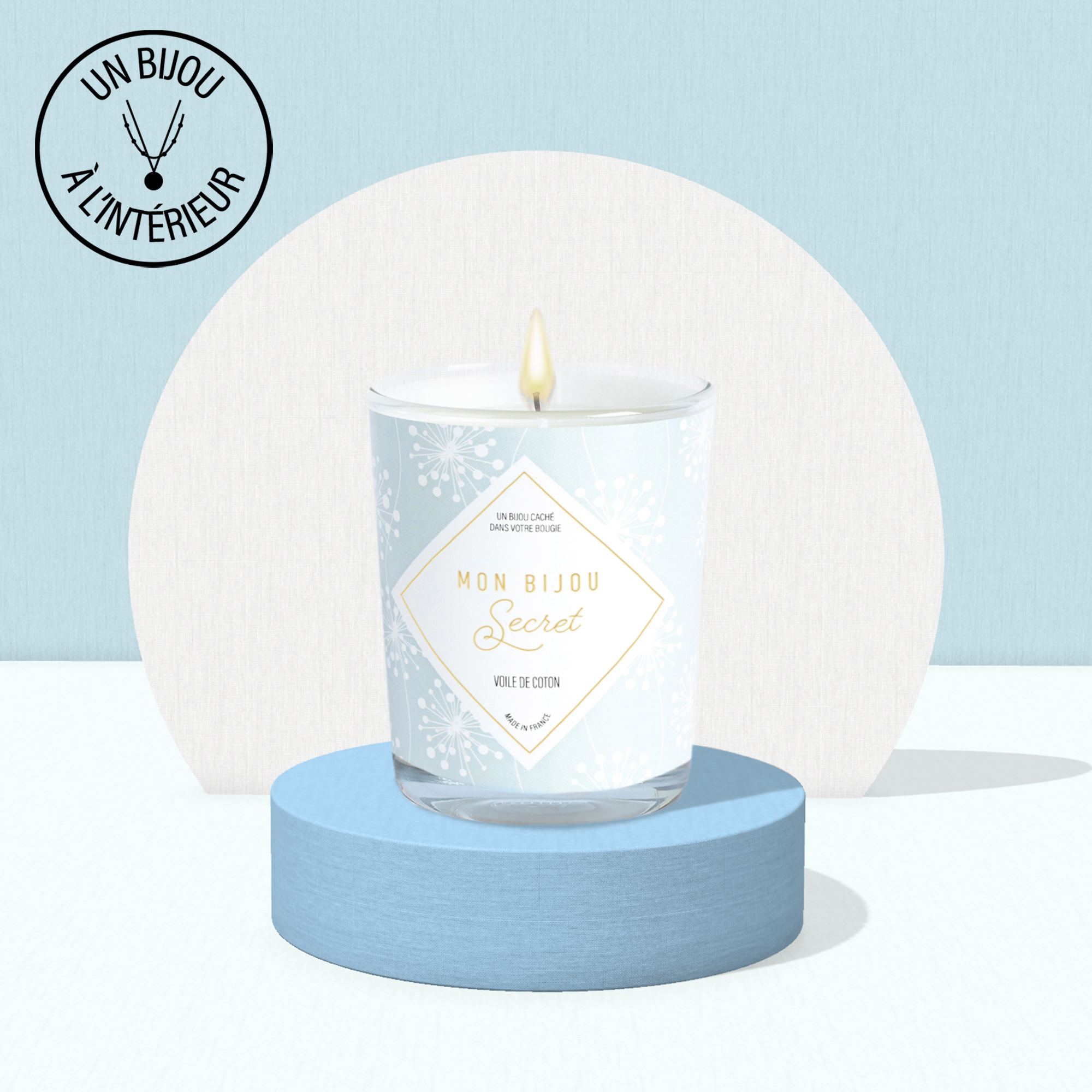 | Plus produit | Cire 100% végétale, parfums naturels de Grasse de très grande qualité, un bijou fantaisie de la catégorie choisie est caché dans votre bougie. Cadeau à forte expérience sensorielle et émotionnelle |