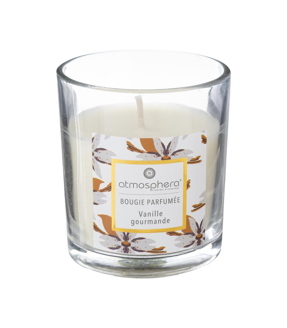 | Libellé | Bougie Parfumée Vanille gourmande Pot en verre 110 G |
