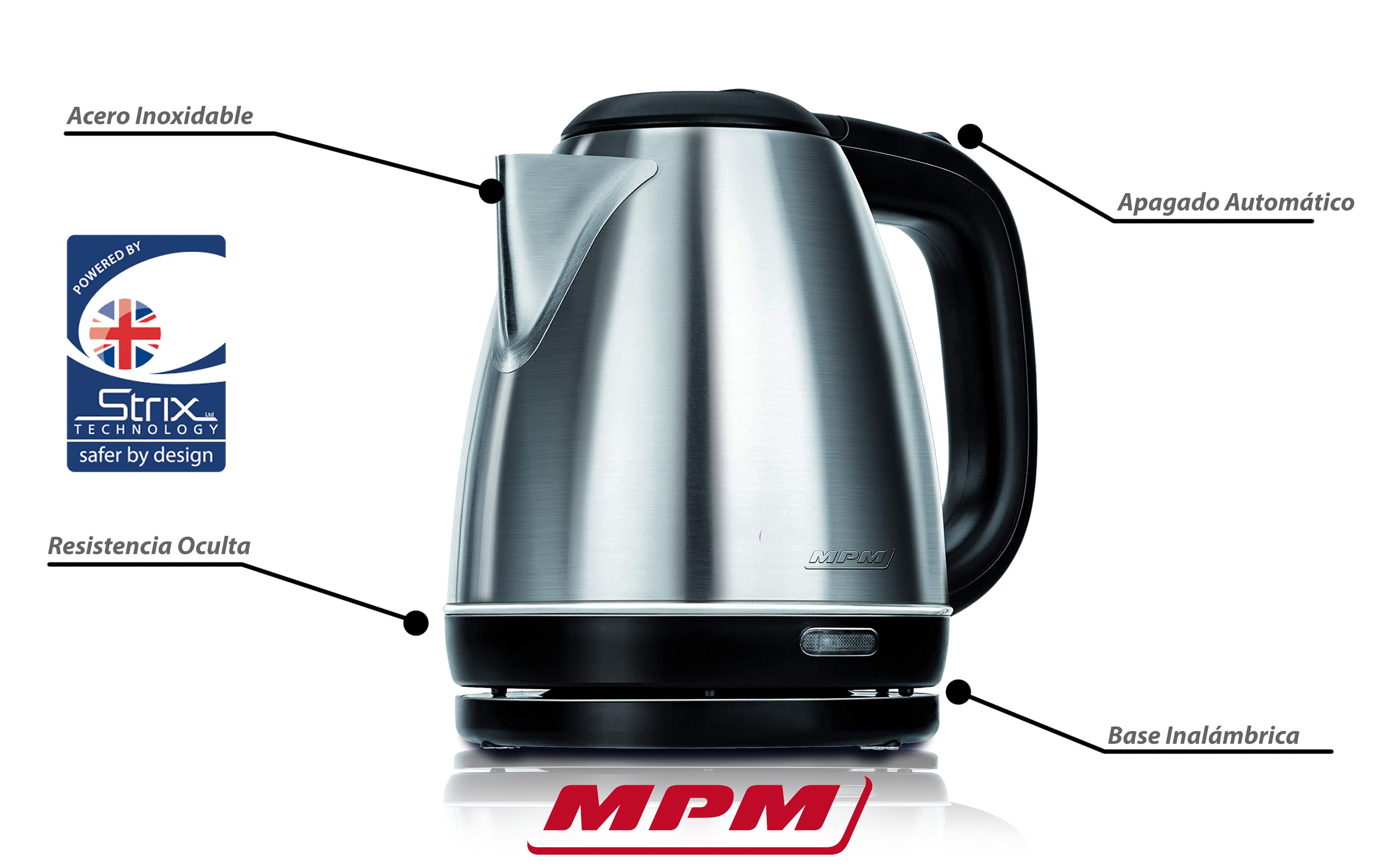 | Libellé | Bouilloire Électrique 1 Litre sans BPA, Acier Inoxydable, Sans Fil Base 360º 1600 Argent MPMMCZ-84M |