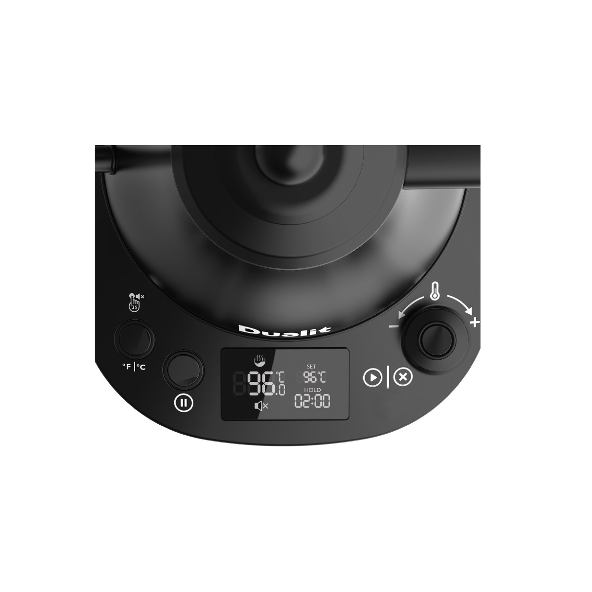 La bouilloire verseuse Dualit offre un contrôle de la température en degrés Celsius et Fahrenheit. La température peut être réglée au degré prés, jusqu'à 100°C / 212° F, pour une précision absolue.