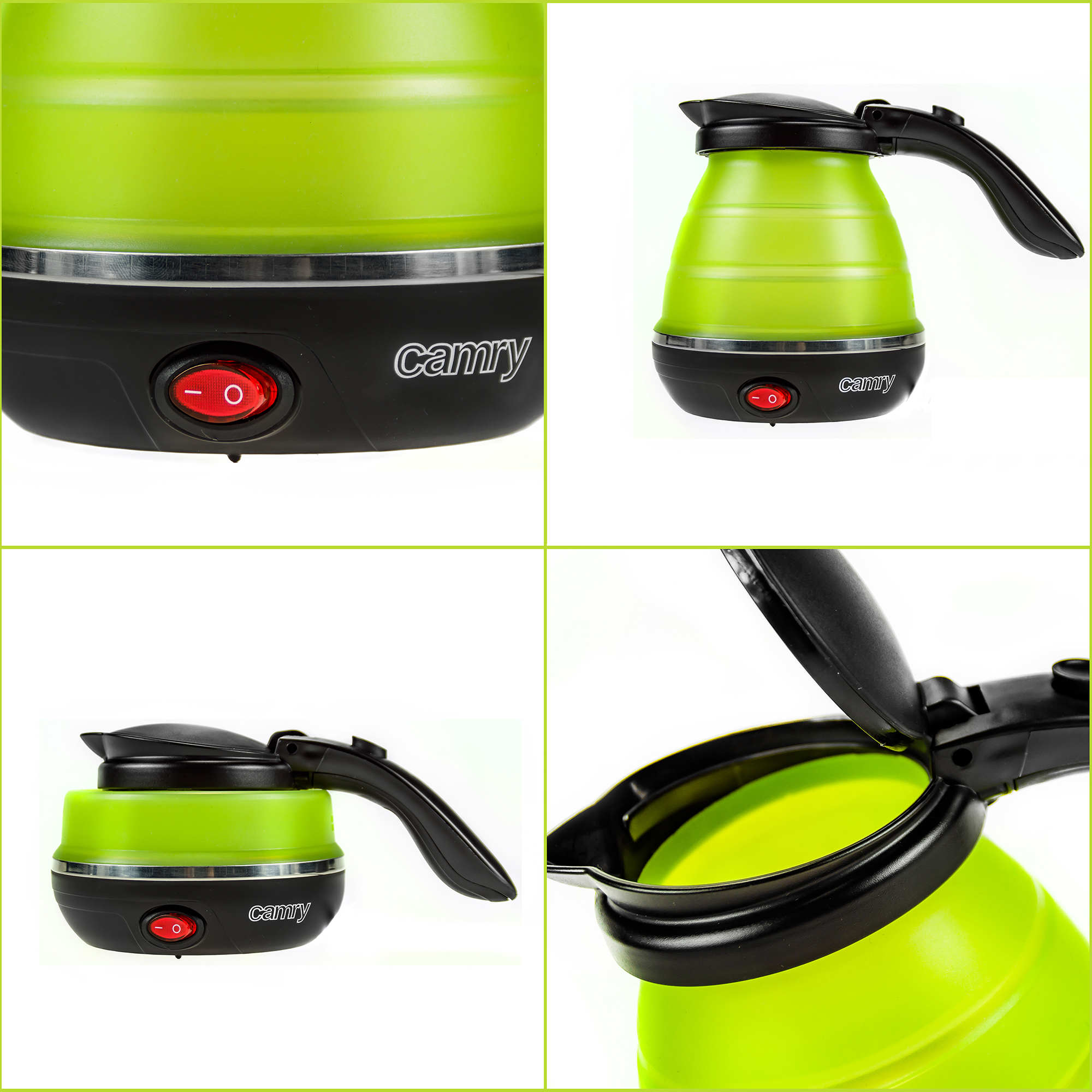 | Libellé | Bouilloire Électrique Pliable 0,5 L, Résistance Cachée, Couvercle Automatique 750 Vert CamryCR 1265 |