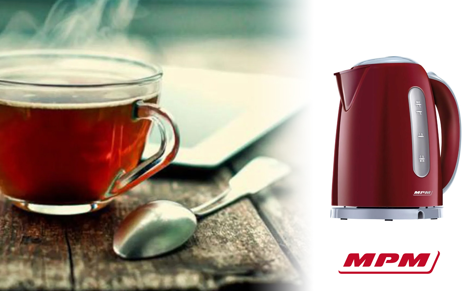 Bouilloire électrique sans fil. 1,7 litres, base 360º, filtre anti-calcaire 2200 Rouge MPMMCZ-85/B2