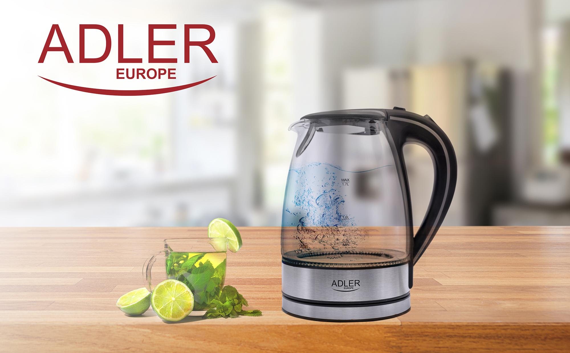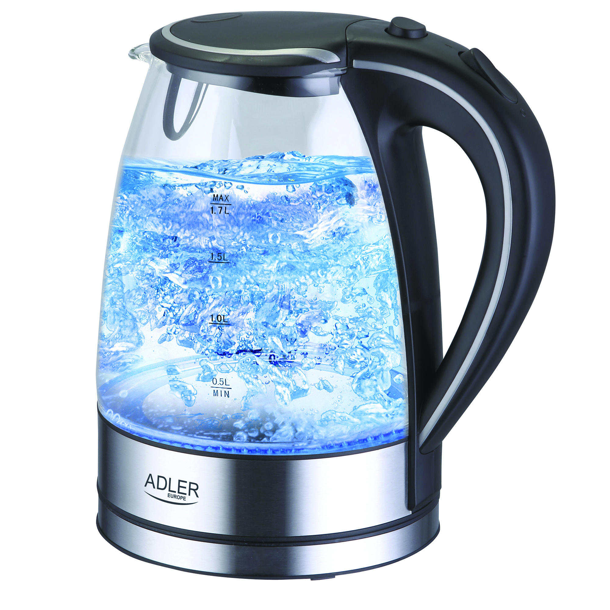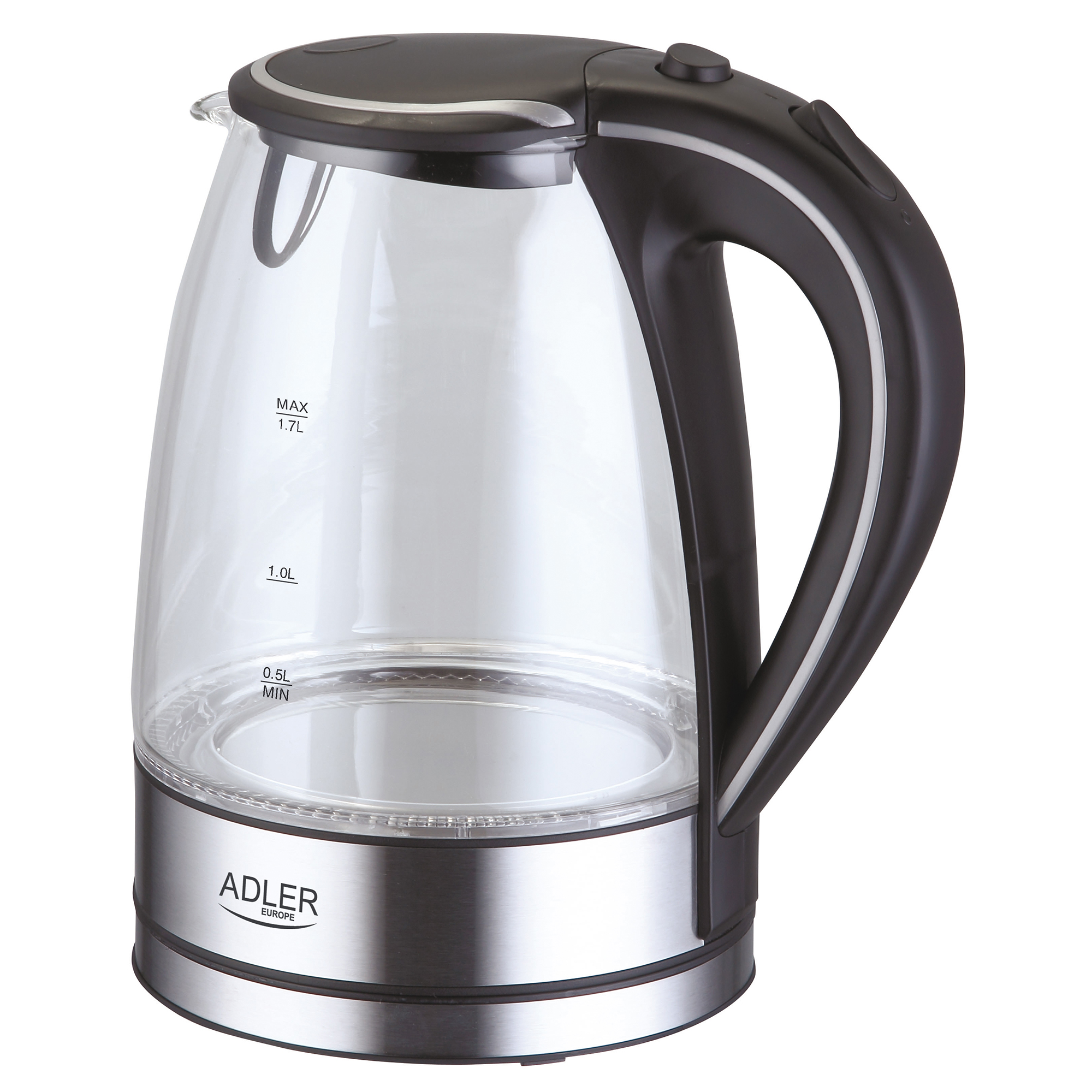 Bouilloire électrique, verre de 1,7 litre, récipient sans BPA, sans Fil 2200 Transparent AdlerAD1225