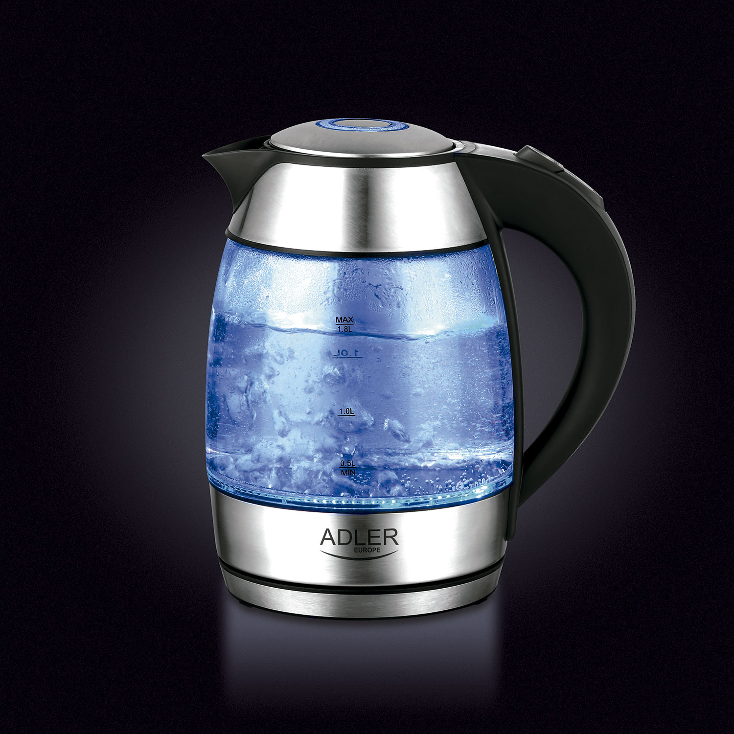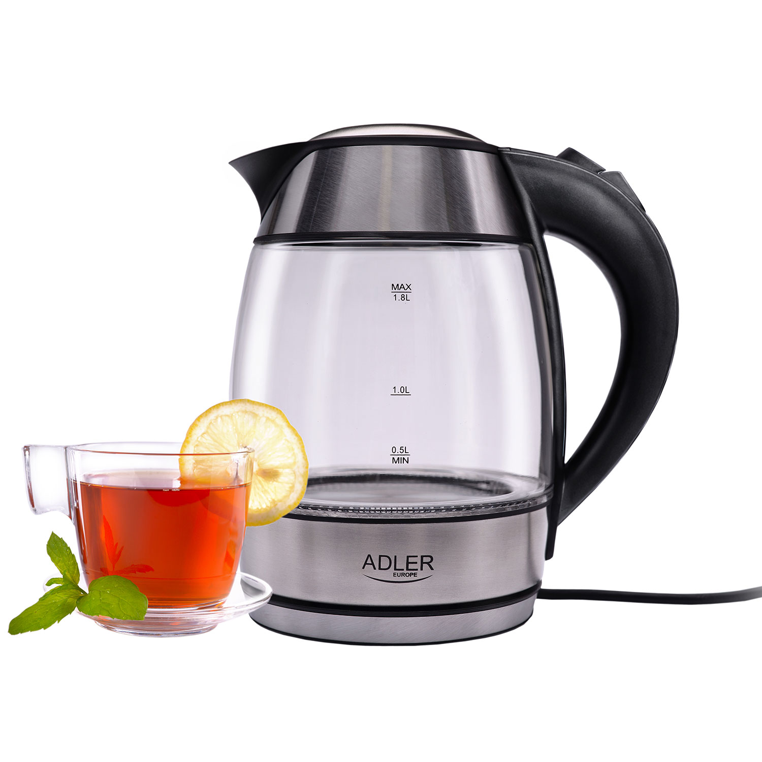 Bouilloire électrique, verre de 1,8 litre, récipient sans BPA, sans Fil 2200 Transparent AdlerAD1246