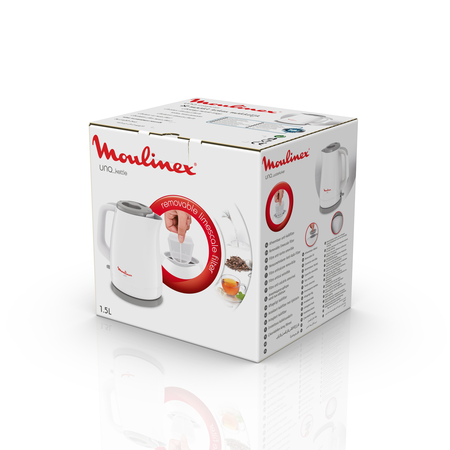 Pratique et utile, cette bouilloire de 1,5 L trouvera parfaitement sa place dans votre cuisine. Filtre anticalcaire amovible Bouton Marche/Arrêt Base pivotante 360°