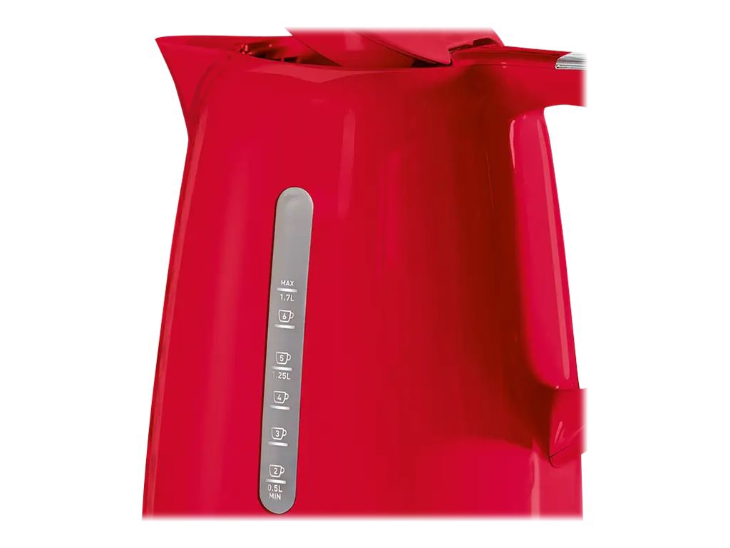 Bouilloire sans fil Soleil Rouge - Capacité 1,7 litre - Puissance 2400 Watts - Résistance cachée - Filtre anti-calcaire amovible - Niveau d'eau visible et gradué - Socle 360° - Arrêt automatique - Coloris rouge
