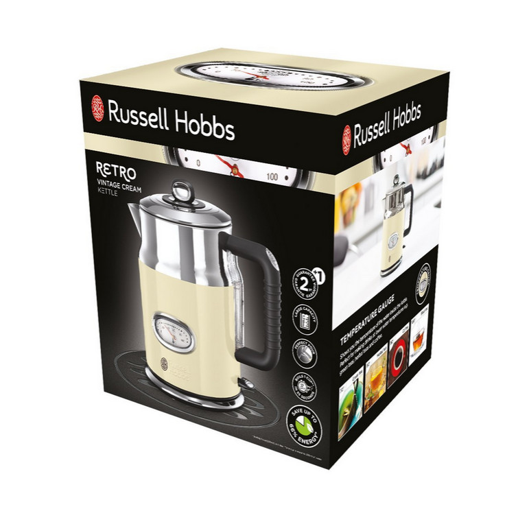 Russell Hobbs 21672-70. Capacité du réservoir d'eau: 1,7 L. Puissance: 2400 W. Couleur du produit: Crème, Matériau du boîtier/corps: Acier inoxydable, Indicateur de niveau d'eau, Fonction garder au chaud