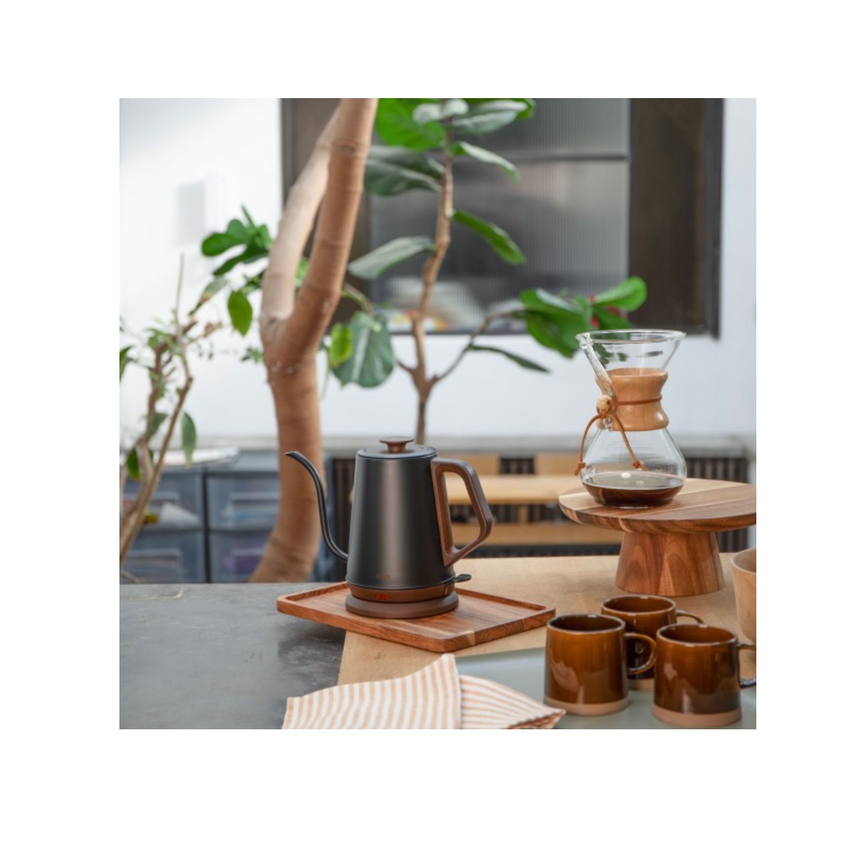 Conçue avec un souci du détail, cette bouilloire d'une capacité de 1,2 litre est idéale pour les amateurs de thé et de café. Elle est équipée d'un col de cygne offrant un flux régulier lors de l'écoulement. De plus son bec est biseauté pour une meilleure précision . Ces deux caractéristiques permettent de contrôler le débit sur la mouture de votre slow coffee. Un versage précis assure une extraction uniforme du café ou une infusion parfaite du thé. Le design moderne et épuré de la bouilloire complète parfaitement tout type de décor de cuisine, la rendant à la fois pratique et décorative. Sa puissance de 1000 W permet une ébullition rapide, idéale pour ces matins pressés. La fonction de rotation à 360° sur son socle facilite son usage, la rendant accessible et pratique pour les droitiers comme pour les gauchers. Et pour ta tranquillité d'esprit, elle possède une protection contre la surchauffe et un arrêt automatique.