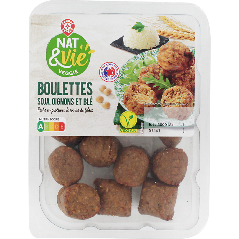 | Origine des principaux ingrédients | BLE (DU GLUTEN DE BLE) ORIGINE : FRANCE, POIS (DE LA MATIERE PROTEIQUE DE POIS) ORIGINE : FRANCE |
