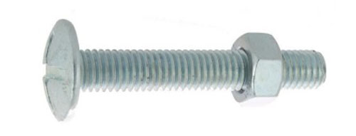 Boulon poelier à tête ronde large fendue en croix acier zingué blanc classe 4.8 NFE 25128/DIN 555 10X120