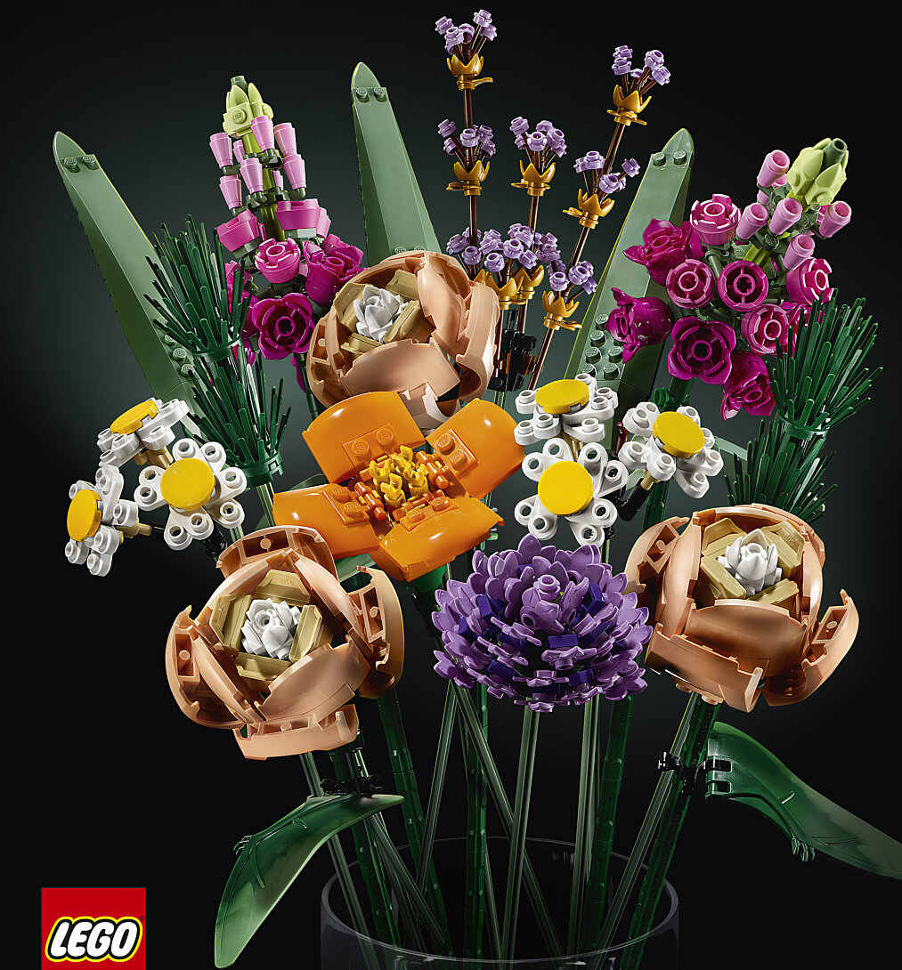 | Plus produit | Le bouquet de fleurs LEGO®, un plaisir à soffrir ou à offrir à une personne chère. Ce cadeau unique combine un projet créatif amusant et une superbe pièce à exposer et à admirer. |