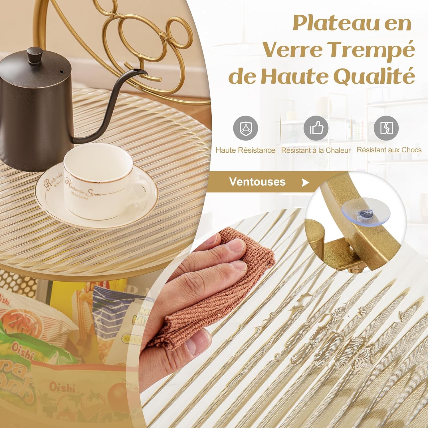- # 𝐏𝐥𝐚𝐭𝐞𝐚𝐮 𝐞𝐧 𝐕𝐞𝐫𝐫𝐞 # Le plateau en verre trempé de ce chariot de rangement résiste non seulement aux défis de l'utilisation quotidienne, mais gère également facilement les déversements accidentels de boissons chaudes et est facile à nettoyer. Les coins arrondis sont conçus pour garantir beauté et sécurité.