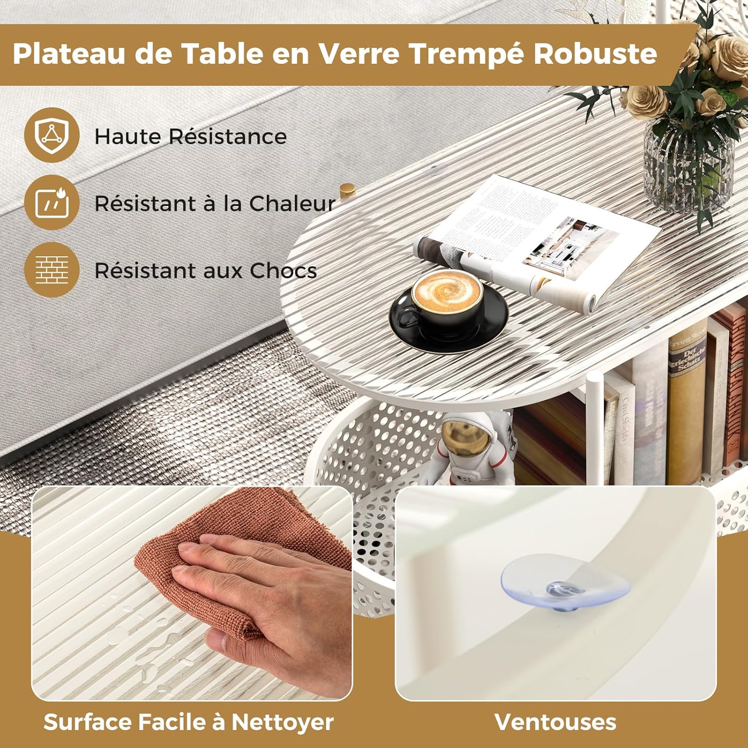 Ajoutez de la chaleur à votre maison avec cette table basse en verre au design d'ours. Le plateau en verre trempé est robuste et facile à nettoyer, idéal pour lire ou prendre un café. Le panier de rangement en bas permet de garder l'espace organisé. Avec 4 roues universelles, vous pouvez facilement déplacer la table basse d'une pièce à l'autre. Dans le salon, sur le balcon ou dans le bureau, elle est un bon compagnon de style pour votre vie.