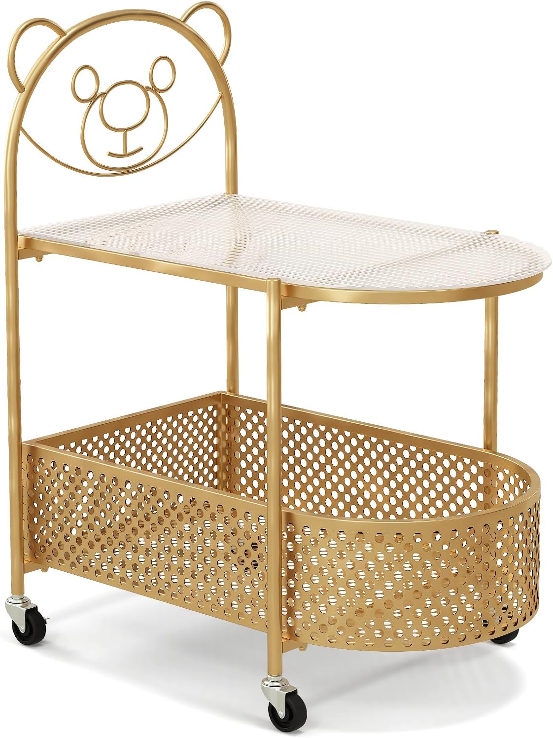 Ajoutez de la chaleur à votre maison avec cette table basse en verre au design d'ours. Le plateau en verre trempé est robuste et facile à nettoyer, idéal pour lire ou prendre un café. Le panier de rangement en bas permet de garder l'espace organisé. Avec 4 roues universelles, vous pouvez facilement déplacer la table basse d'une pièce à l'autre. Dans le salon, sur le balcon ou dans le bureau, elle est un bon compagnon de style pour votre vie.