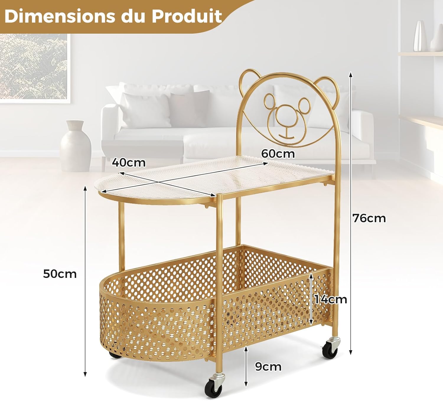 - # 𝐂𝐡𝐚𝐫𝐢𝐨𝐭 𝐌𝐨𝐛𝐢𝐥𝐞 # La structure en métal de ce bout de canapé assure la stabilité. Les 4 roues en caoutchouc ne détériorent pas le sol (deux d'entre elles sont équipées de freins), facilitant le déplacement d'une pièce à l'autre et devenant votre « mini-bar » mobile.