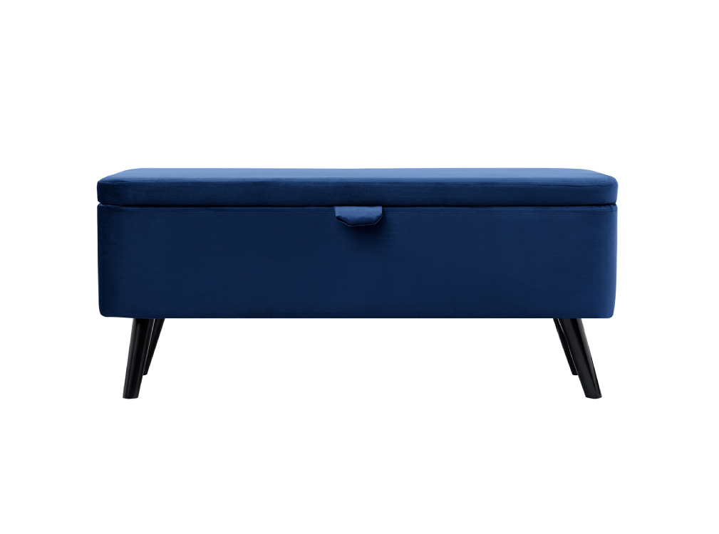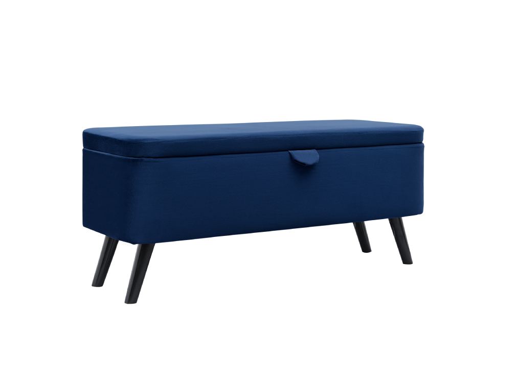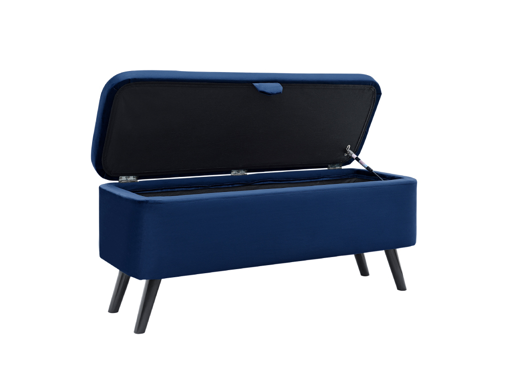 | Libellé | Bout de lit POLY avec coffre de rangement et pieds en bois - Bleu |