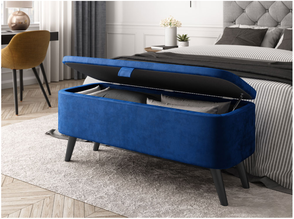 Bout de lit POLY avec coffre de rangement et pieds en bois - Bleu
