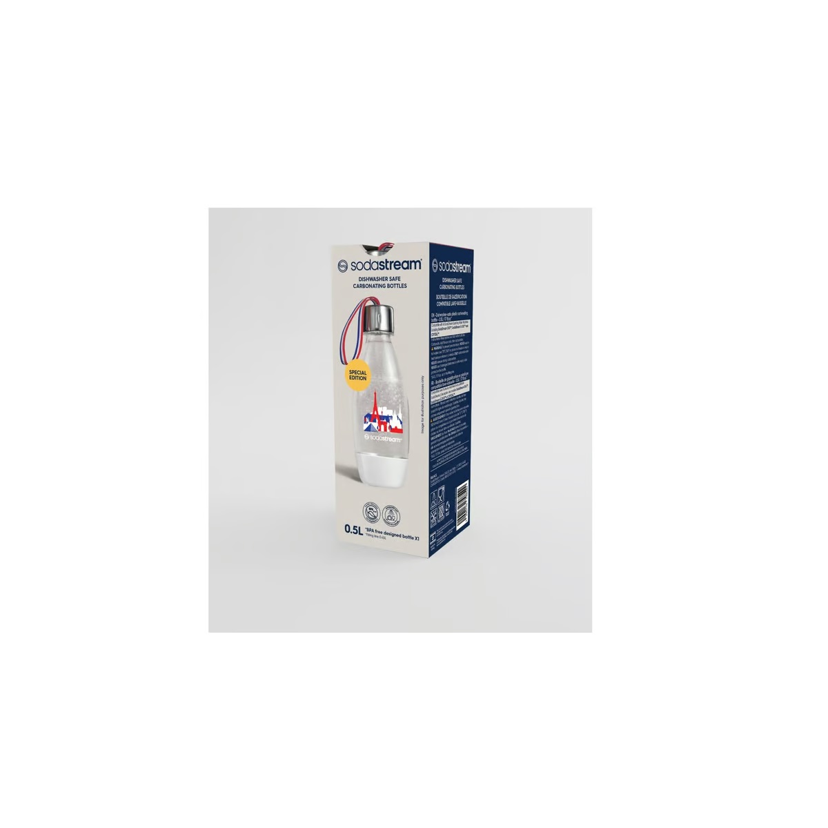 Une bouteille au design original pour conserver vos bulles toute la journée ! Bouteille compatible lave-vaisselle garantie sans Bisphénol A pour réaliser toutes vos boissons !