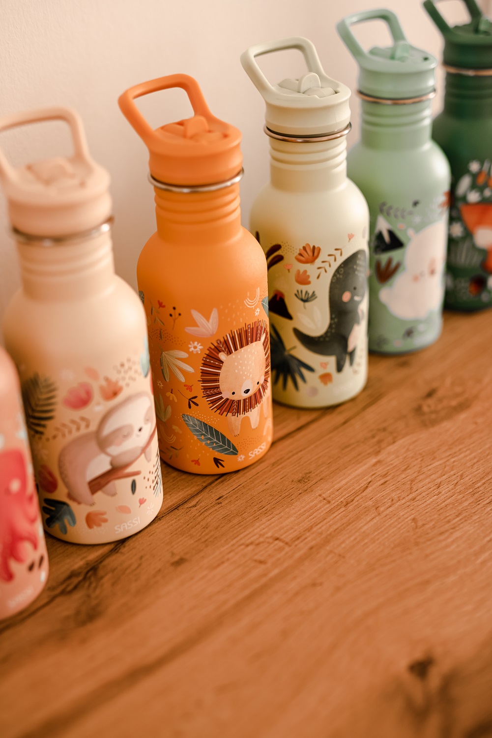 Plongez dans l'univers coloré et ludique de nos bouteilles en acier inoxydable, offrant une capacité de 500 ml et ornées de charmants petits personnages.