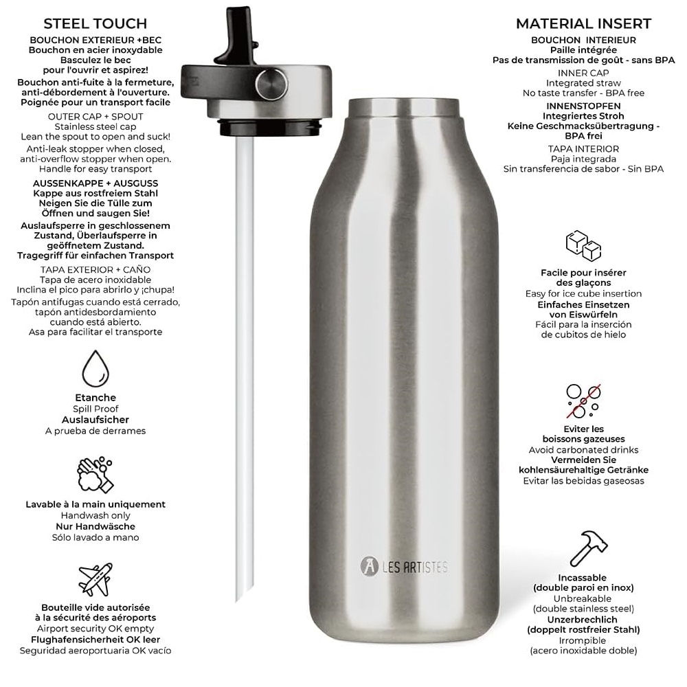 Bouteille isotherme 2.0 argentée 1,5 Litre - Les Artistes Paris.
