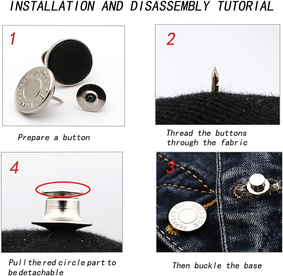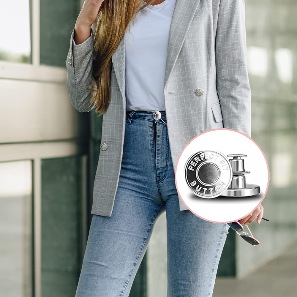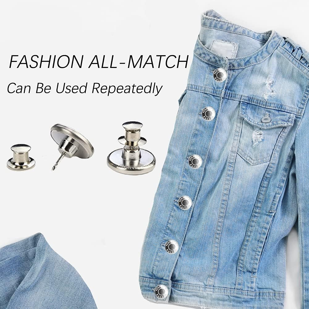 Boutons de jeans détachables, paquet de 10 Silver Bouton Ajustement Parfait