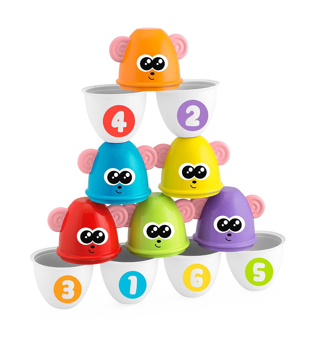 Un jeu de bowling amusant pour faire des strikes ou construire un chamboulle tout de 12 pièces colorées! Son tout premier jeu de bowling pour sentraîner à faire des strikes en renversant les 6 quilles colorées à tête de singes. Chaque quille peut être divisée en deux parties.