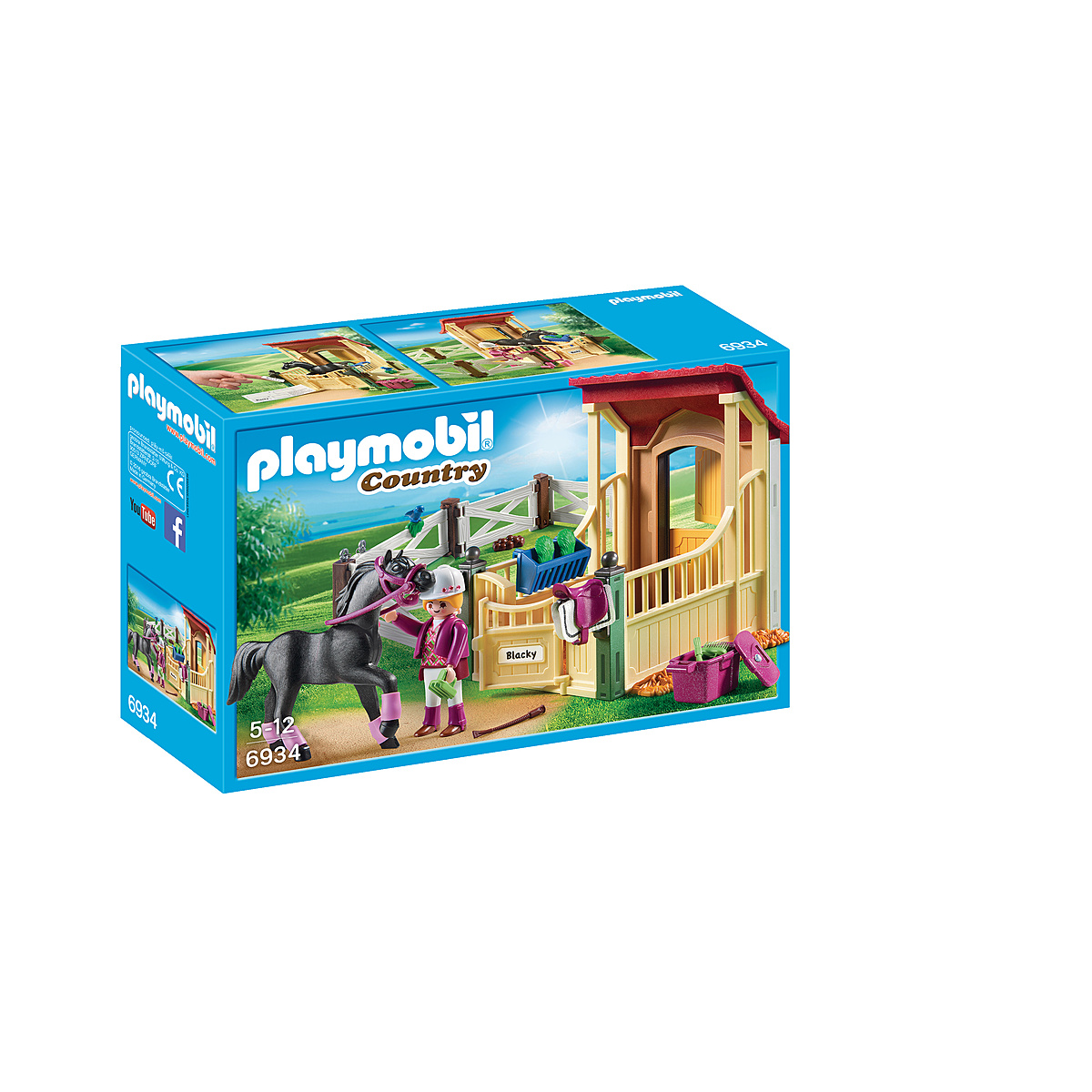 | Plus produit | - Le box peut être installé seul avec le paddock voisin, être combiné avec d\'autres boxes ou être utilisé comme extension du club d\'équitation (réf. 6926).\n- Race fournie : Pur-sang arabe.\n- Les portes de l\'écurie peuvent être ouvertes dans les deux directions.\n- L\'étiquette jointe permet à l\'enfant de décider lui-même s\'il souhaite conserver le nom donné au cheval ou écrire le nom de son choix sur la porte du box. \n- Le couvercle du coffret orné d\'une pierre en forme de cur et trois petits strass roses sont placés sur le côté du casque du cavalier. |