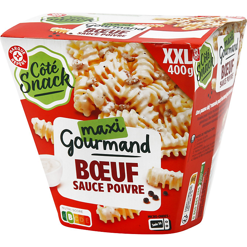 Pâtes alimentaires aux œufs cuites à la sauce au poivre (37%) et à la viande de bœuf COTE SNACK