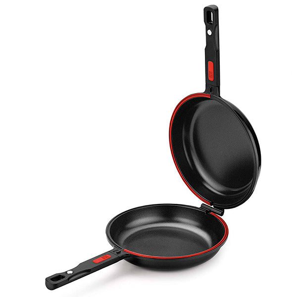 La poêle double Premiere est une poêle idéale pour cuisiner des tortillas, représentant l'un des meilleurs rapports qualité-prix, alliant qualité et design moderne. C'est une poêle robuste fabriquée en aluminium coulé avec un revêtement antiadhésif Teflon Innovations sans PFOA.Elle est adaptée à toutes les sources de chaleur (y compris l'induction) grâce à son fond diffuseur full induction. De plus, elle dispose d'une excellente répartition de la chaleur pour une cuisson parfaite de toutes nos recettes.La poêle Dupla est composée de deux poêles qui s'emboîtent grâce à son système de fermeture hermétique de couleur rouge et est spécialement conçue pour cuire une tortilla de pommes de terre parfaite, sans renverser et sans risque de brûlures au moment de la retourner.C'est une poêle idéale non seulement pour cuisiner des tortillas avec n'importe quelle garniture en toute sécurité. Grâce à son effet four, elle est parfaite pour préparer une multitude de recettes, comme du poulet rôti avec des légumes ou des poivrons rôtis, un pisto avec des œufs, du saumon fumé, du poisson en papillote, des pizzas, des empanadas ou une tourte à la viande ou au thon, des pommes au four, ou même préparer rapidement et facilement des nachos avec du fromage fondu et des sandwichs pour un dîner informel, en les gardant chauds grâce à sa fermeture hermétique.Et maintenant, avec l'achat de votre poêle Dupla, vous recevez un mini livre de recettes complet avec 12 recettes de tortillas délicieuses, pour profiter au maximum de votre nouvelle poêle !CaractéristiquesFabriquée en aluminium coulé très résistant à la déformation (5,5 mm d'épaisseur à la base).Revêtement antiadhésif Teflon Innovations 100 % sans PFOA.Fond full induction compatible avec toutes les sources de chaleur, y compris l'induction.Poignée ergonomique pour une prise agréable et sécurisée.Cuisine rôtie avec effet four : grâce à son joint isolant associé à l'aimant de sa poignée, un effet four parfaitement uniforme se crée à l'intérieur de la poêle.MesuresDiamètre supérieurDiamètre de base20 cm14,2 cm24 cm16,9 cm26 cm19,1 cm