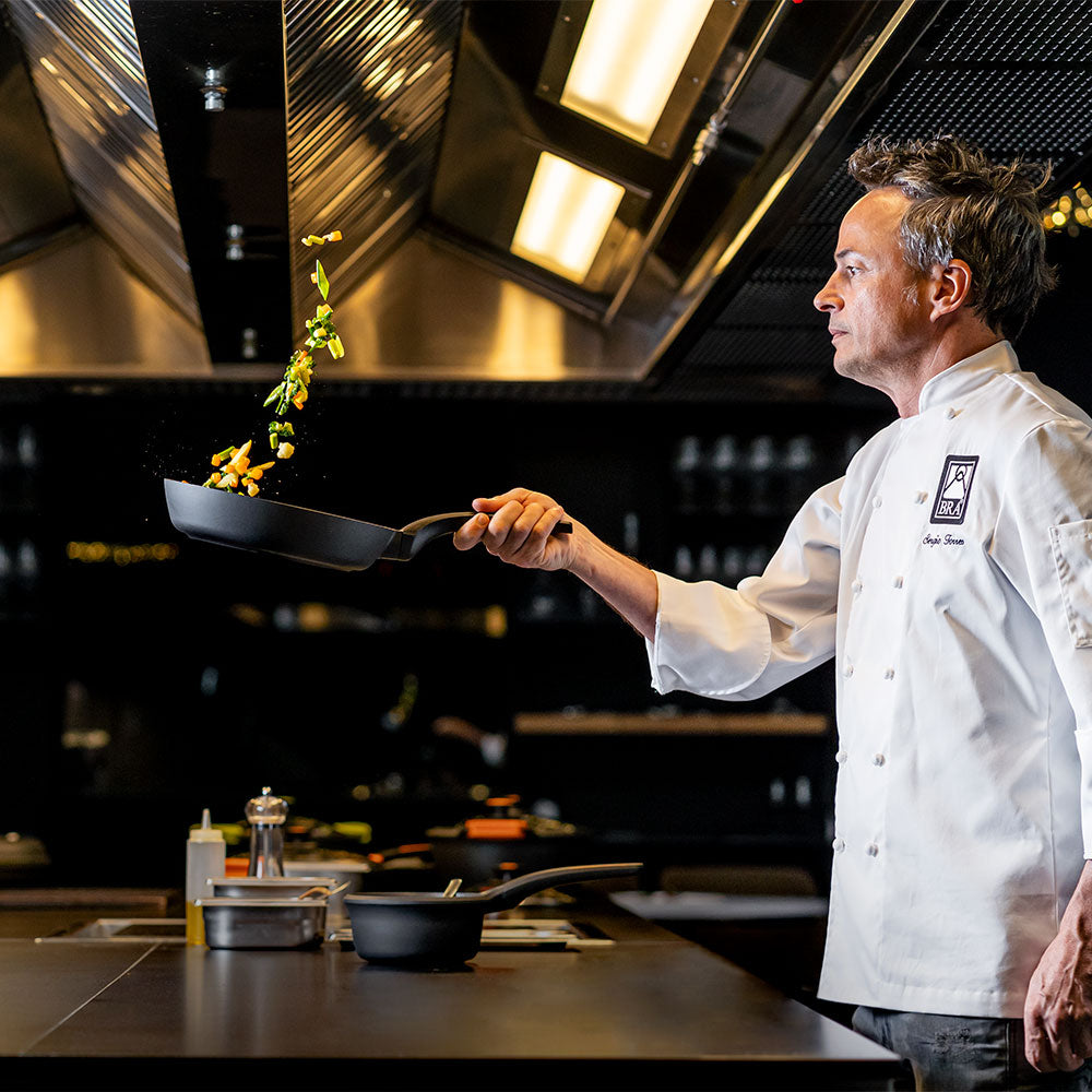 La poêle Efficient réunit l'efficacité et la qualité pour une utilisation intensive en cuisine avec les meilleurs résultats. C'est une poêle robuste et durable grâce à son corps en aluminium coulé et à la qualité de son revêtement antiadhésif Platinum Plus sans PFOA.Elle est adaptée à toutes les sources de chaleur (y compris l'induction) grâce à son fond diffusant full induction. De plus, elle a une excellente répartition de la température pour une cuisson parfaite de toutes nos recettes.C'est une poêle idéale pour réaliser toutes sortes de recettes en combinant ses différentes tailles. Vous pouvez préparer des sauces ou faire des œufs frits dans les plus petites, tout en marquant la viande, en cuisinant le poisson ou un blanc de poulet à la poêle dans les plus grandes, en dorant des filets de porc panés ou en faisant frire des pommes de terre pour accompagner. Elles sont idéales tant pour faire sauter des légumes et préparer une brouillade de champignons, que pour élaborer un pisto, une sauce bolognaise, n'importe quelle pâte à la carbonara ou pour cuisiner la béchamel des croquettes. Les plus petites poêles ont la taille parfaite et une bonne hauteur pour vous permettre de frire des croquettes, des chaussons, des beignets ou des donuts de manière optimale, rapidement et en maintenant la température de l'huile. Dans toutes ses tailles, cuisiner avec elles de manière efficace et avec de grands résultats est, de plus, une expérience très agréable. Et grâce à son revêtement antiadhésif de haute qualité où rien ne colle, elles sont très confortables à nettoyer.CaractéristiquesFabriquée en aluminium coulé extrêmement résistant à la déformation (6mm d'épaisseur à la base).Revêtement antiadhésif Teflon Platinum Plus de haute qualité et très durable. 100% sans PFOA.Fond full induction compatible avec toutes les sources de chaleur, y compris l'induction.Poignée ergonomique noire avec le logo de BRA en orange.DimensionsDiamètre supérieurDiamètre de baseHauteur16cm11,6cm4,6cm18cm12,4cm4,7cm20cm14,2cm4,9cm22cm15,2cm5,3cm24cm16,9cm5,3cm26cm18,6cm5,3cm28cm19,8cm5,3cm30cm21,5cm5,3cm